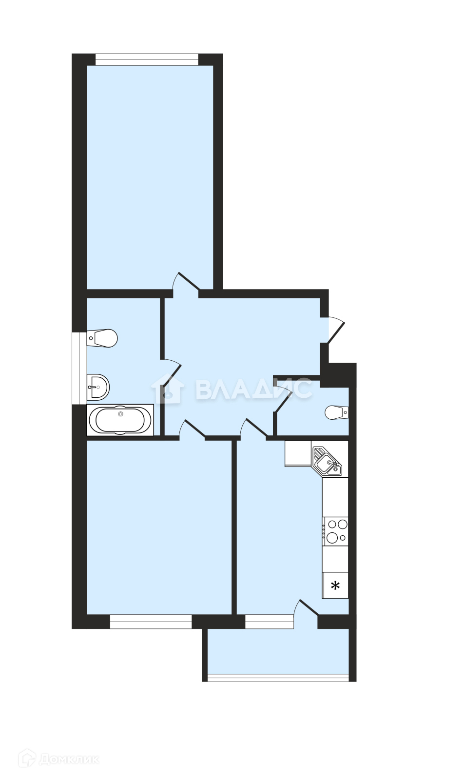 + 2 больших санузла: один с полноценной ванной и раковиной, другой только с раковиной.