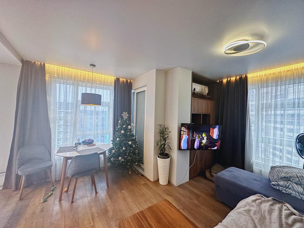 В продаже просторная евро-2-х комнатная квартира с качественным ремонтом! Общая площадь 43.4 кв.м., 12 этаж. Квартира полностью готова к проживанию! Удобная функциональная планировка!