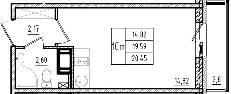 Общая площадь 21 м2