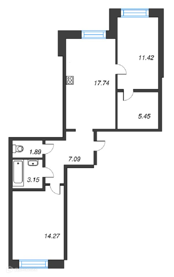 Общая площадь 61 м2