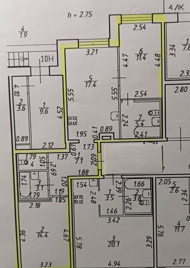 Квартира общей площадью 60,7 кв.м, с пpоcторной кухнeй 17,4 кв.м и двумя изолиpованными комнатами (14.4 кв.м и 11.4 кв.м). Первый высокий этаж.