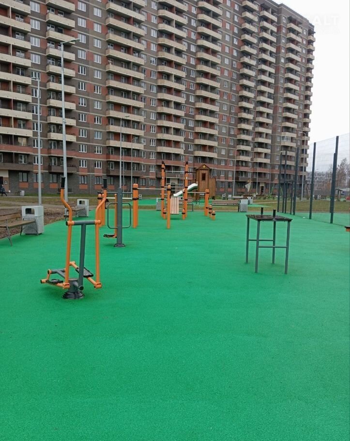 Из подъезда два независимых выхода один на улицу и второй во внутренний закрытый двор с детскими и спортивными площадками. Магазины в шаговой доступности. У дома находится школа, рядом в стадии строительства детский садик.