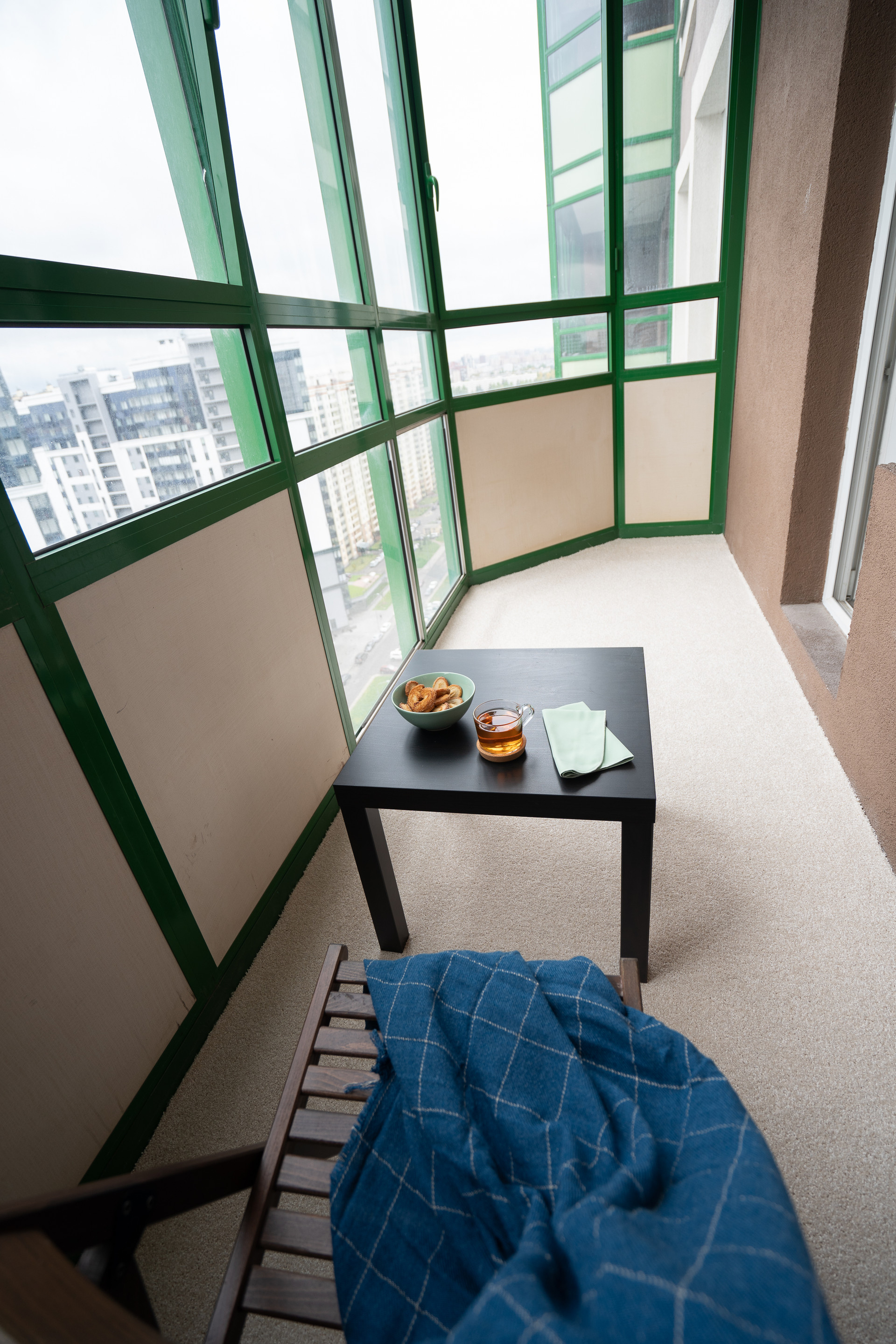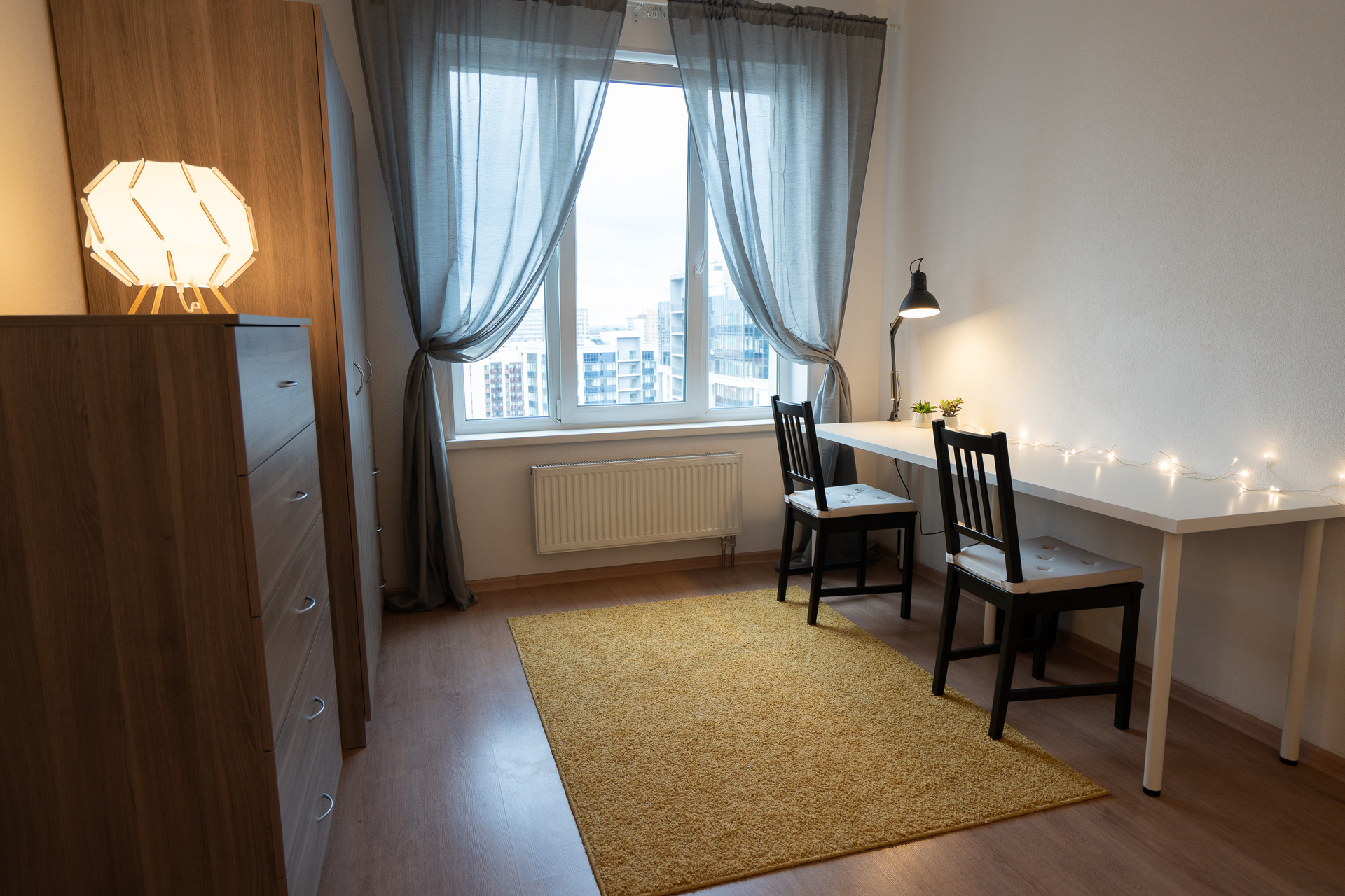 Сама квартира на 21 этаже современного дома. Из-за высокого этажа у вас будет хороший вид с большого балкона и из комнаты. Летом очень солнечно (если для вас это минус, то можно повесить плотные шторы). В квартире есть весть необходимый минимум бытовой техники и мебели.