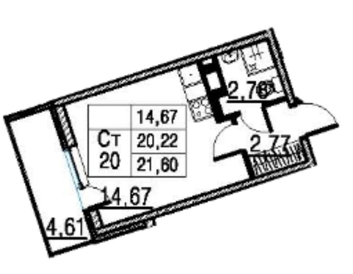 Общая площадь 22 м2