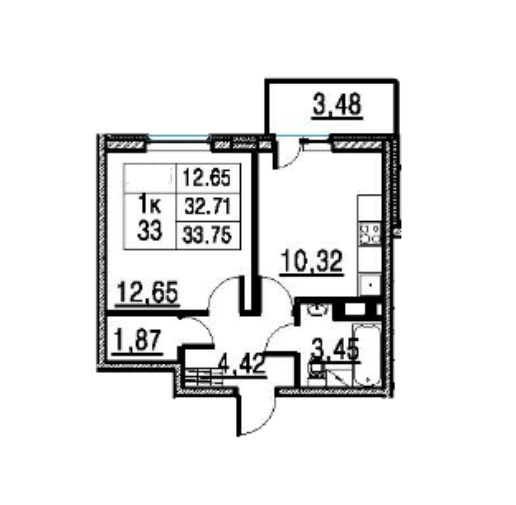 Общая площадь 34 м2