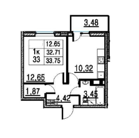 Общая площадь 34 м2