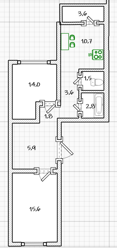 Площадь кухни 10.7 м2