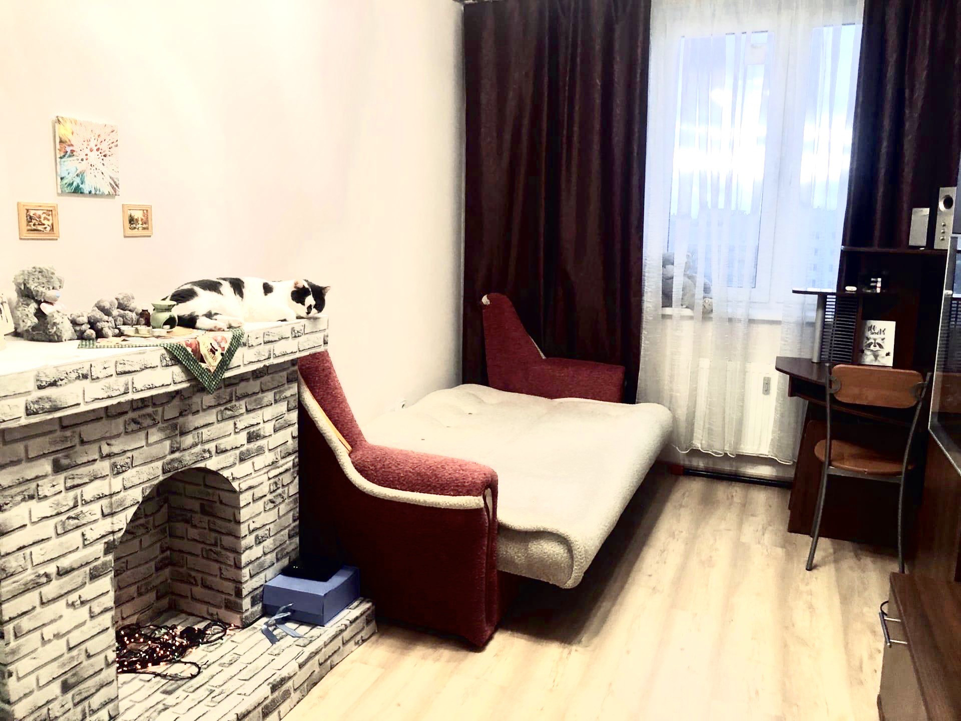 просторная, однокомнатная квартира. несмотря на свои метры, очень вместительная и уютная.