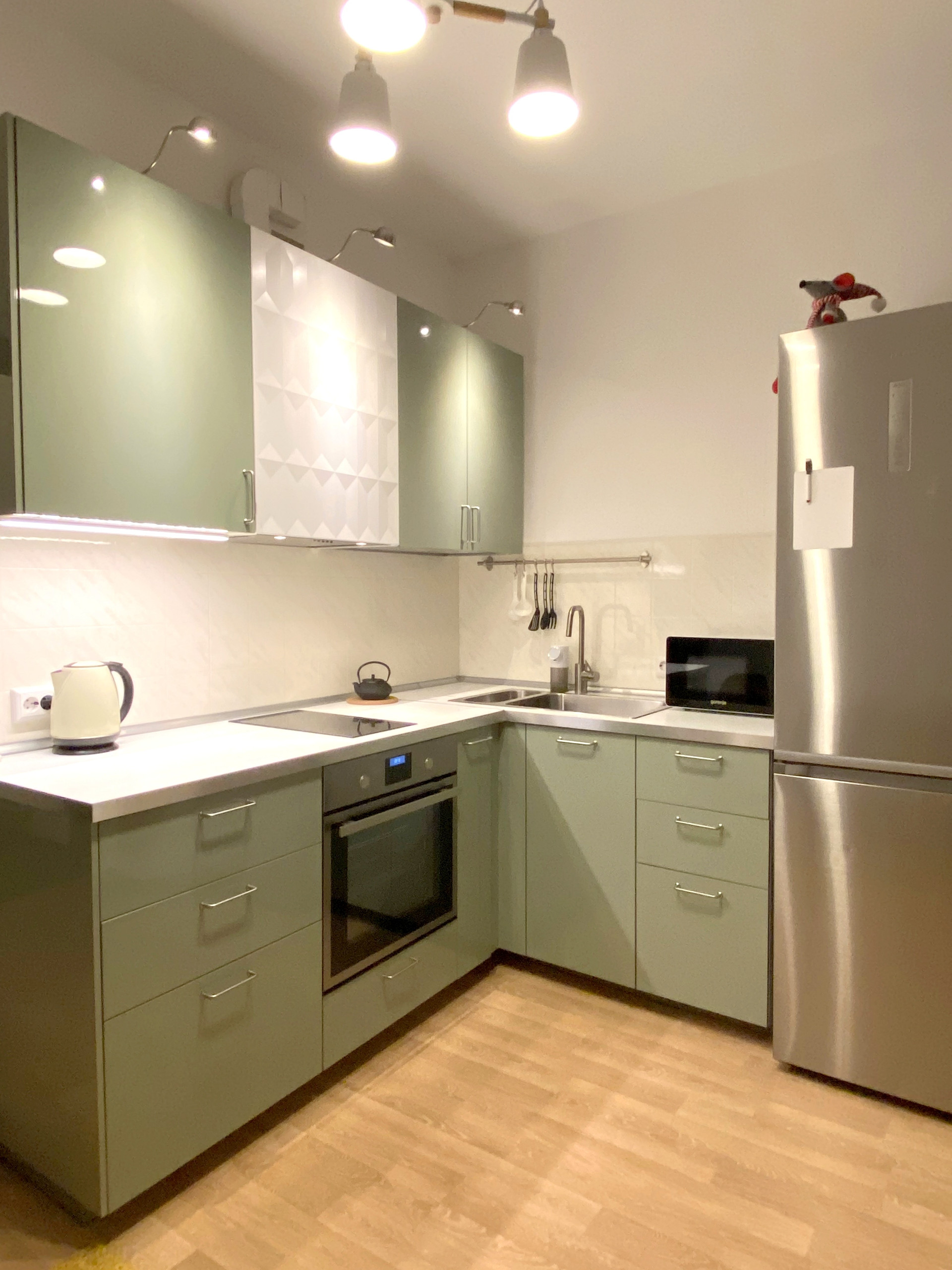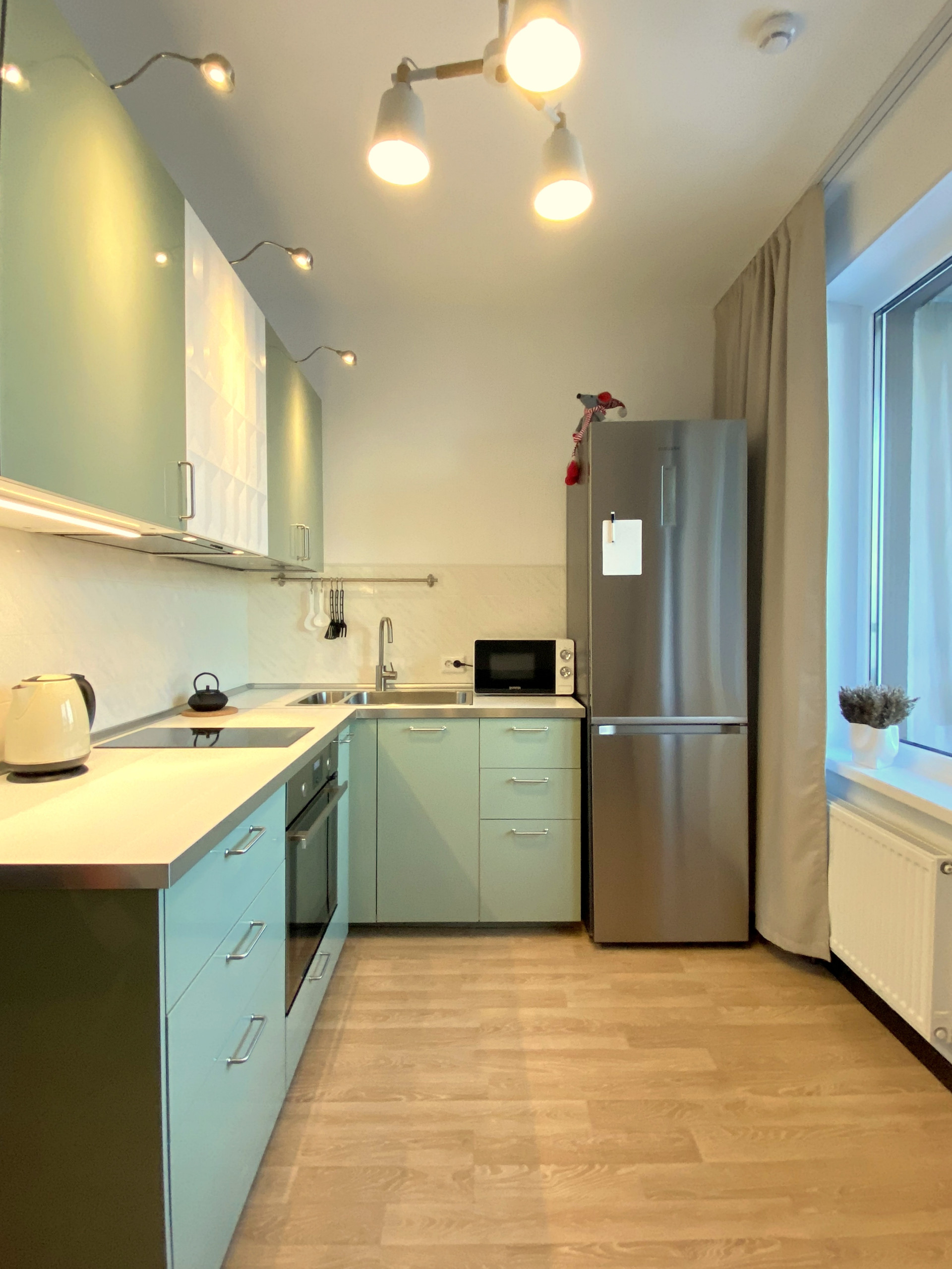 Квартира передаётся с мебелью, бытовой техникой, интерьерным текстилем и освещением.