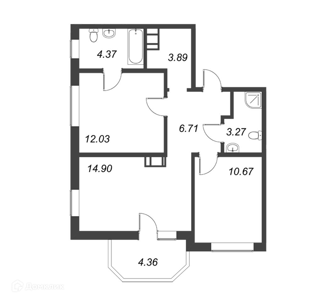 Балкон, лоджия 1 балкон