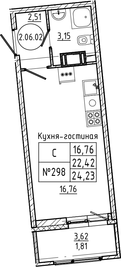 Общая площадь 24 м2