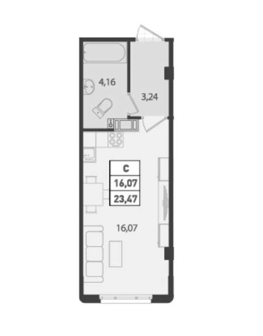 Общая площадь 23.47 м2