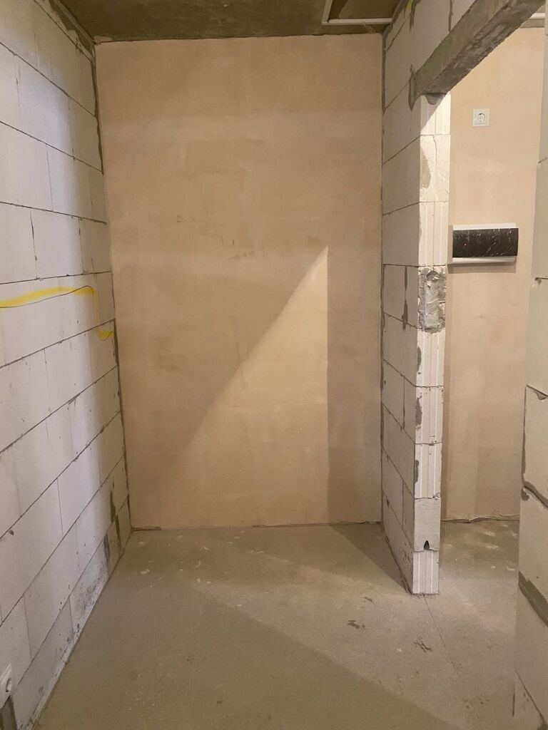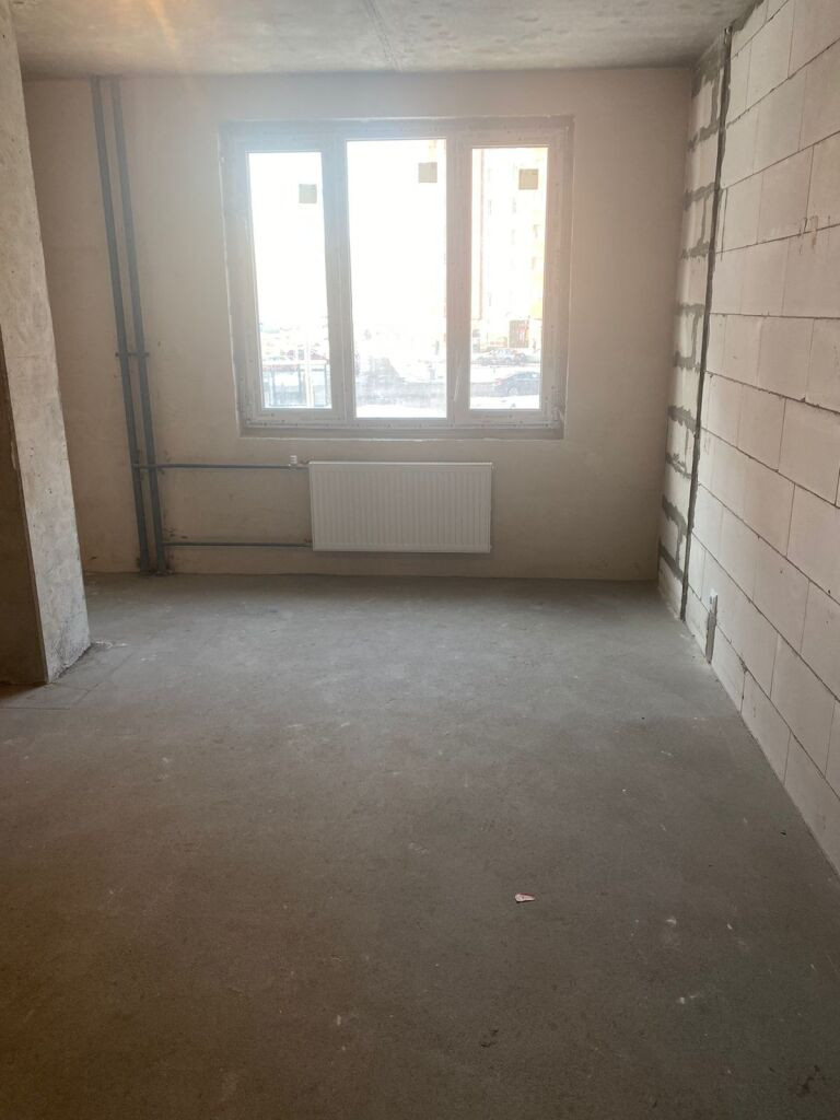 В квартире черновая отделка, совмещённый сан. узел , кухня отделена от комнаты , необычная планировка .
