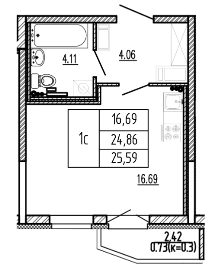 Общая площадь 25.59 м2