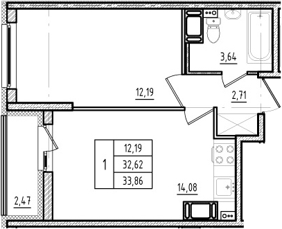 Балкон, лоджия 1 балкон