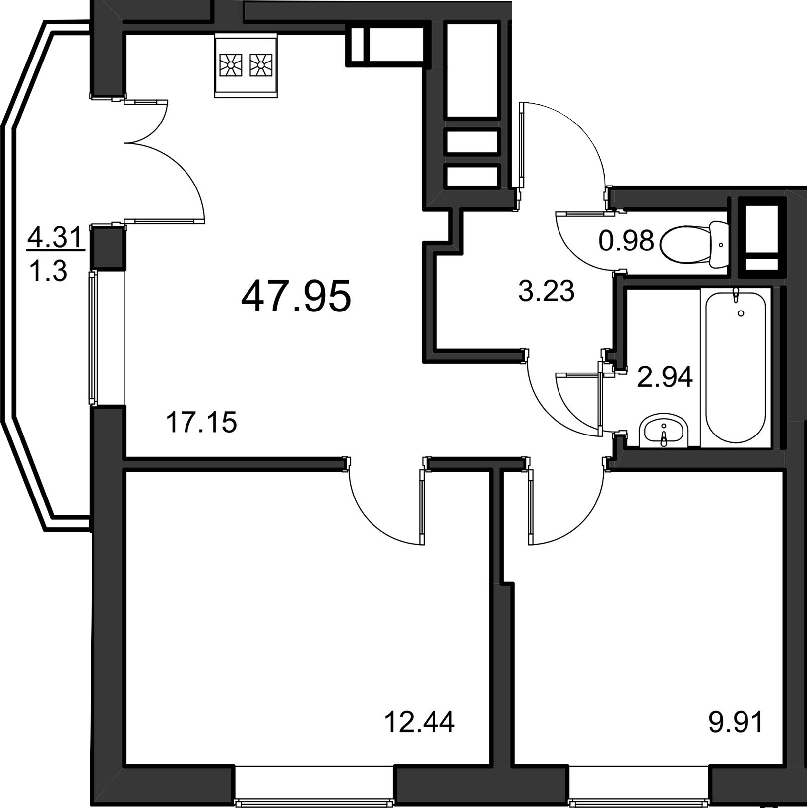 Общая площадь 48 м2