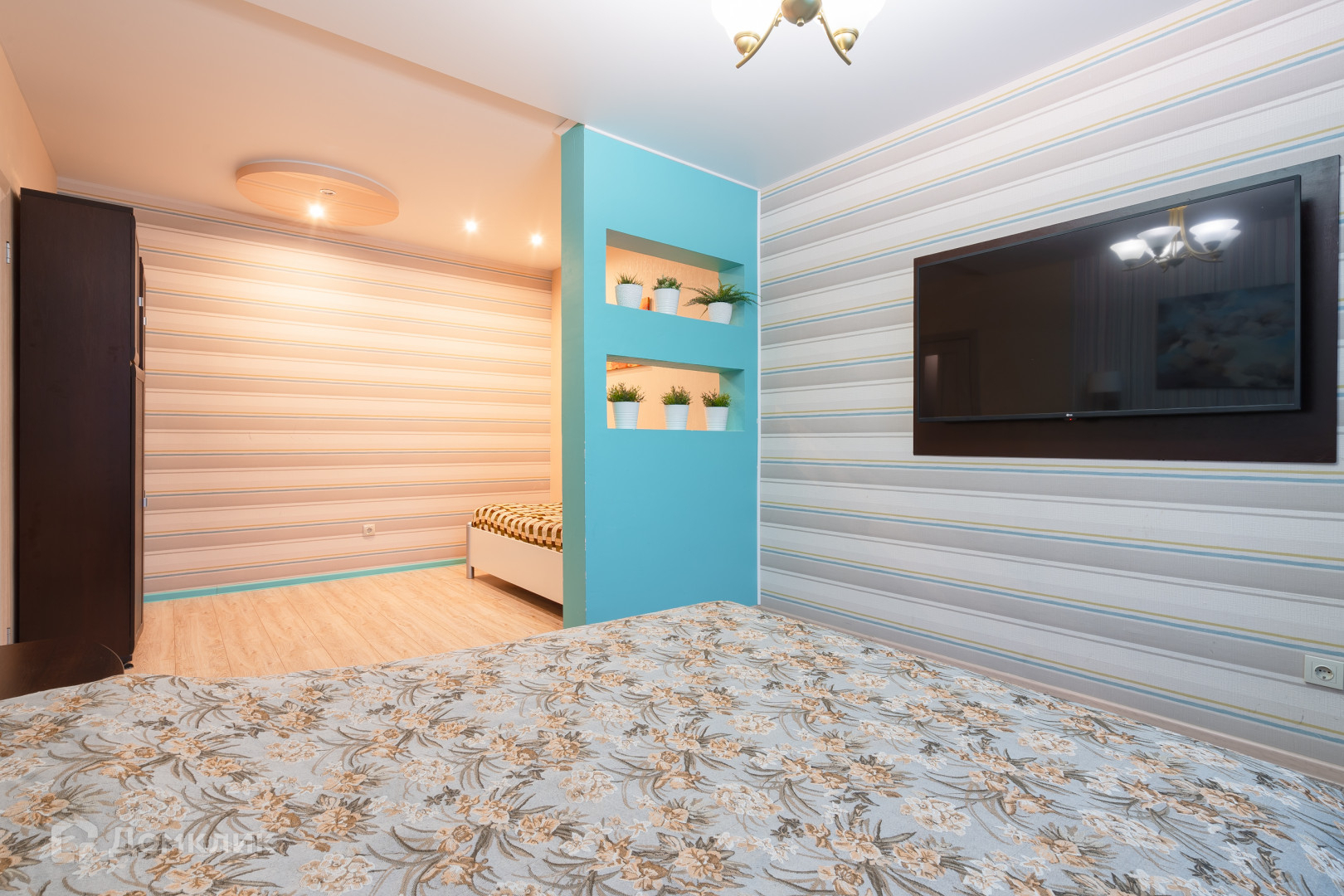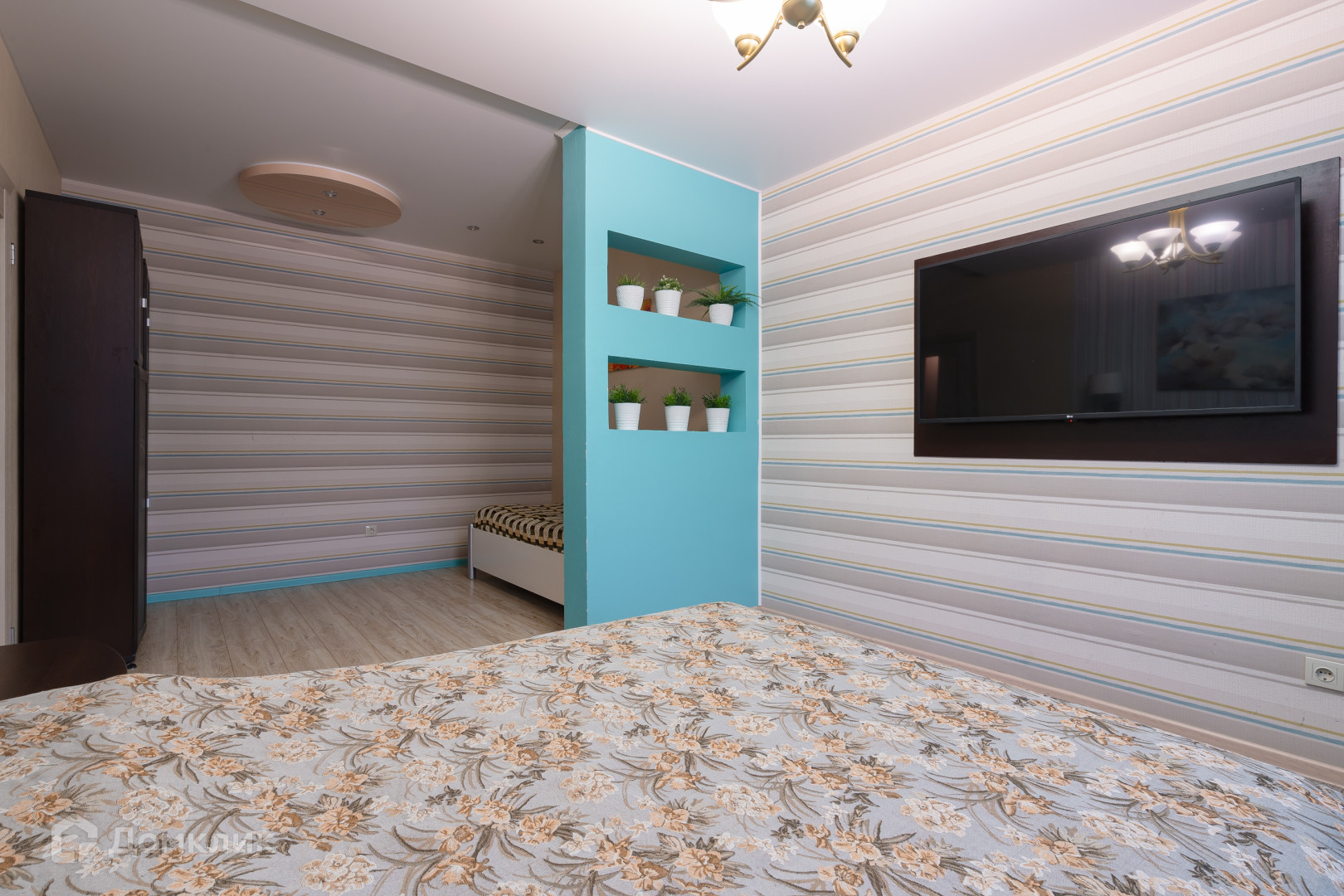 В большой комнате выполнен дизайнерский ремонт и выполнено зонирование комнаты, для наиболее комфортного проживания.