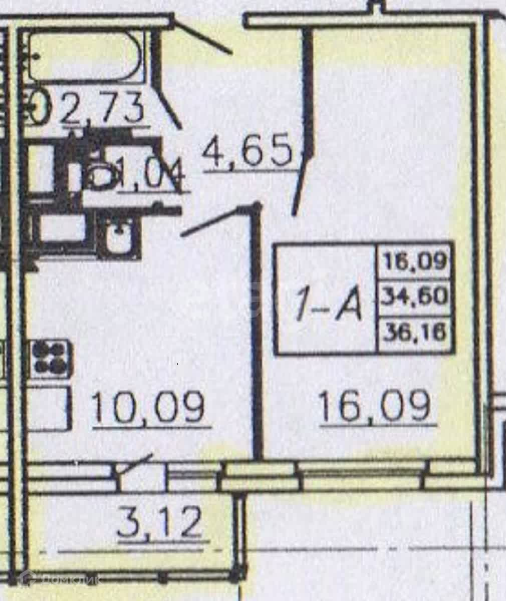 Общая площадь 34.7 м2
