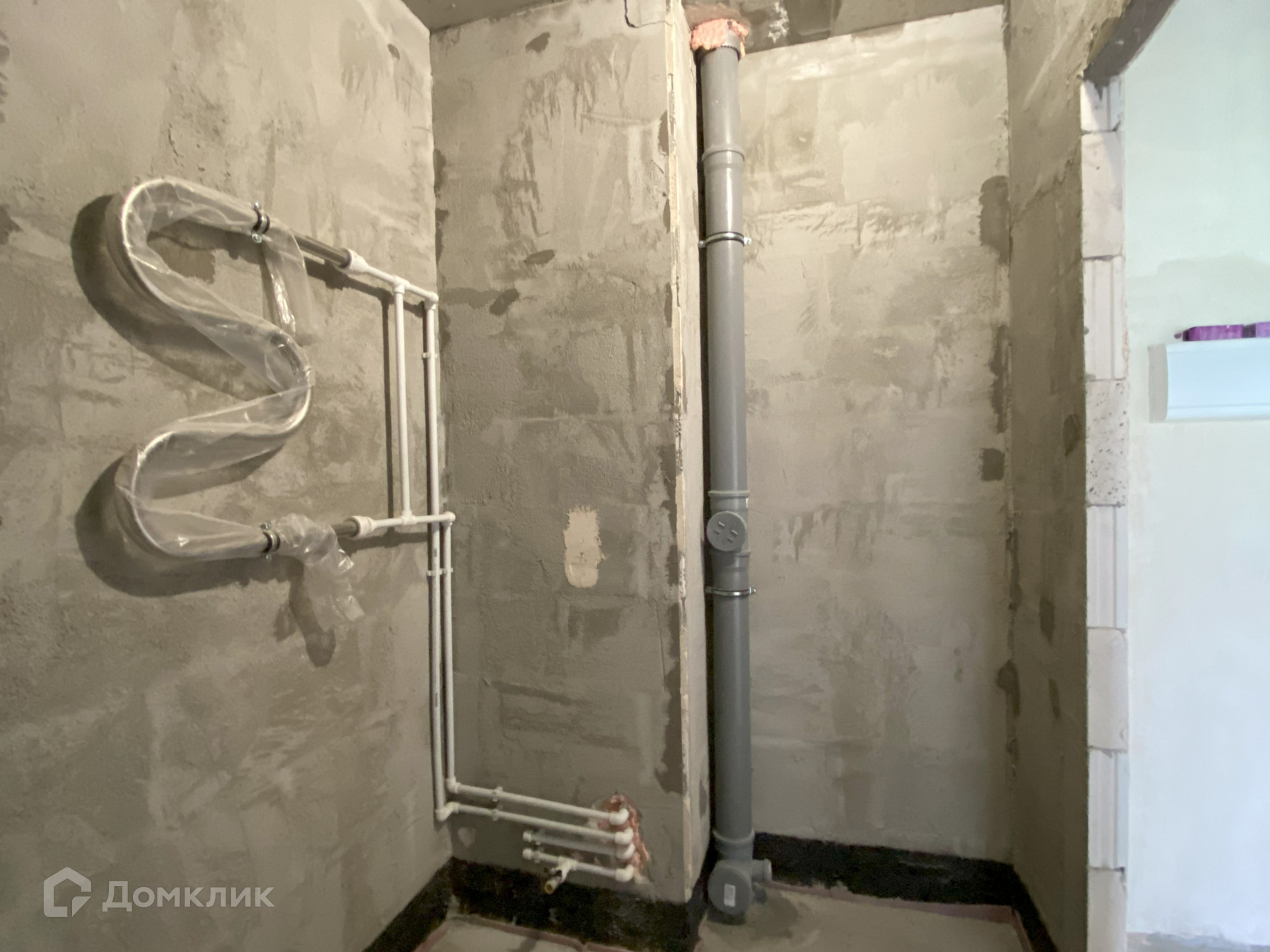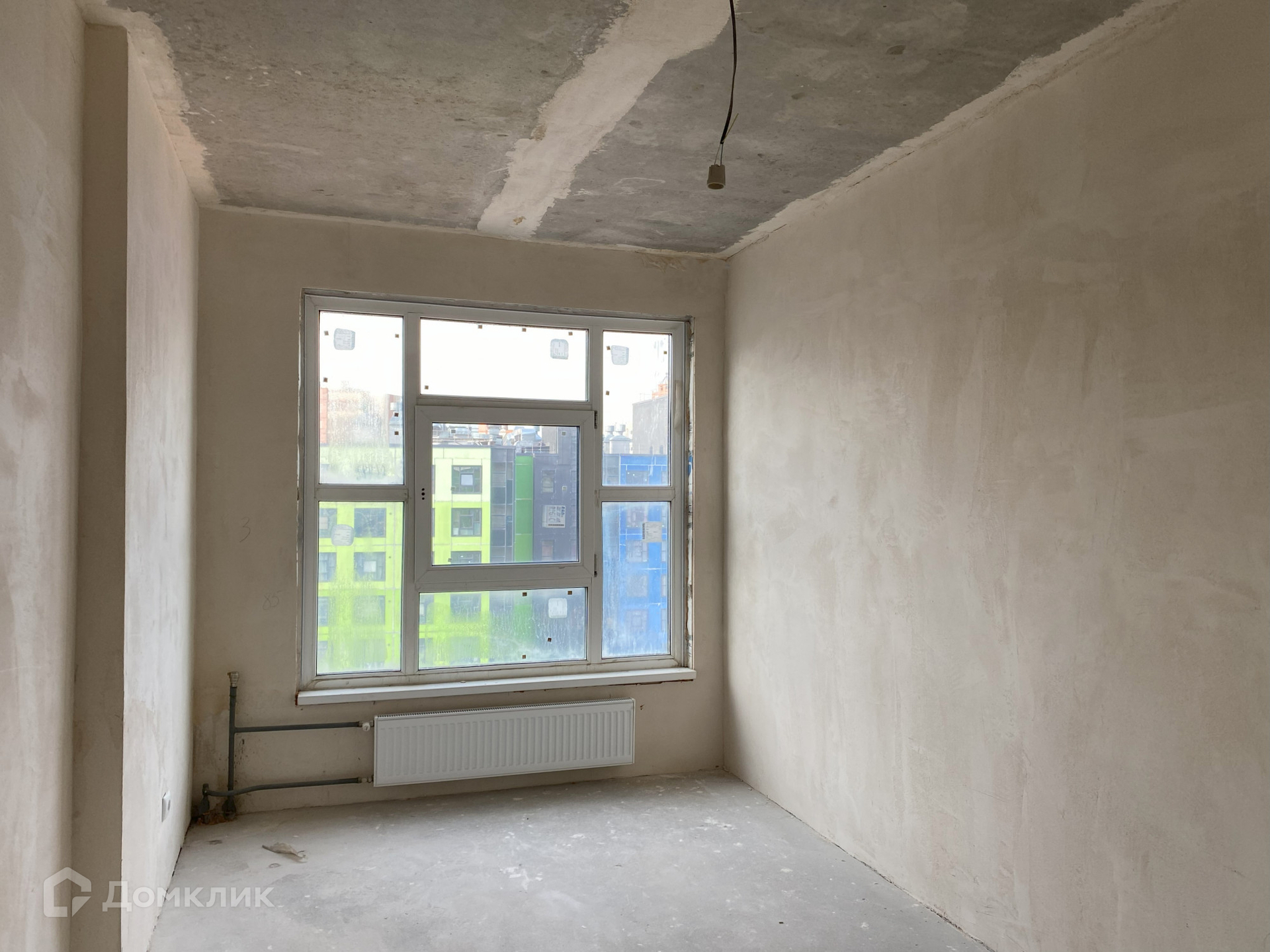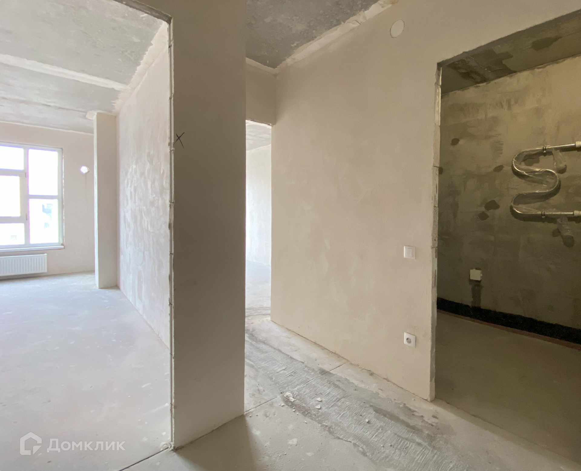 Предчистовая отделка - стяжка пола, оштукатурены стены, электрическая разводка по всей квартире, выключатели, розетки, радиаторы отопления.