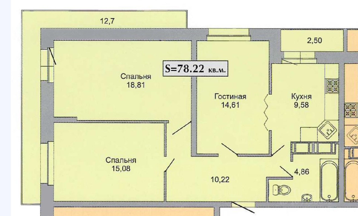 Общая площадь 74 м2
