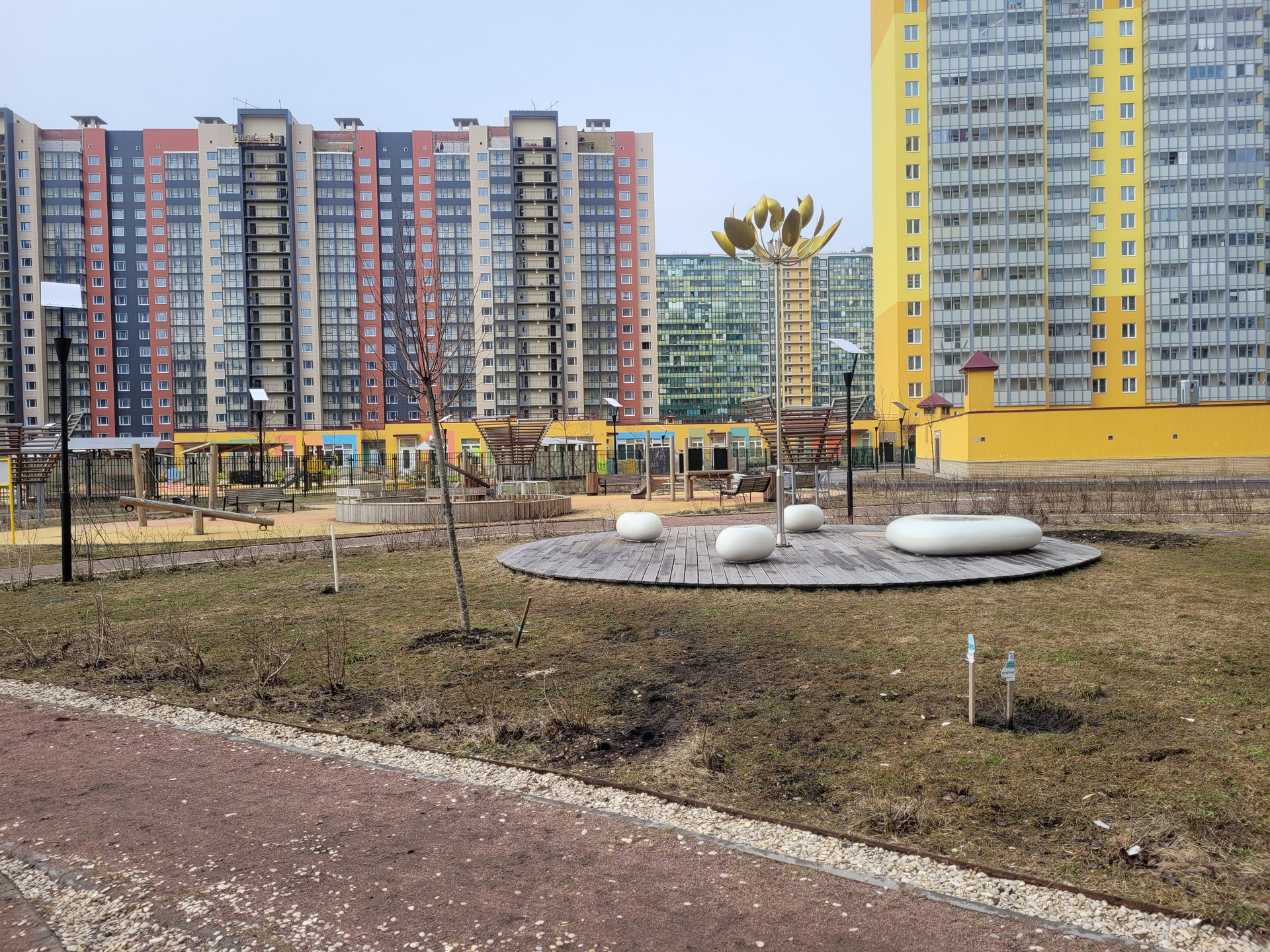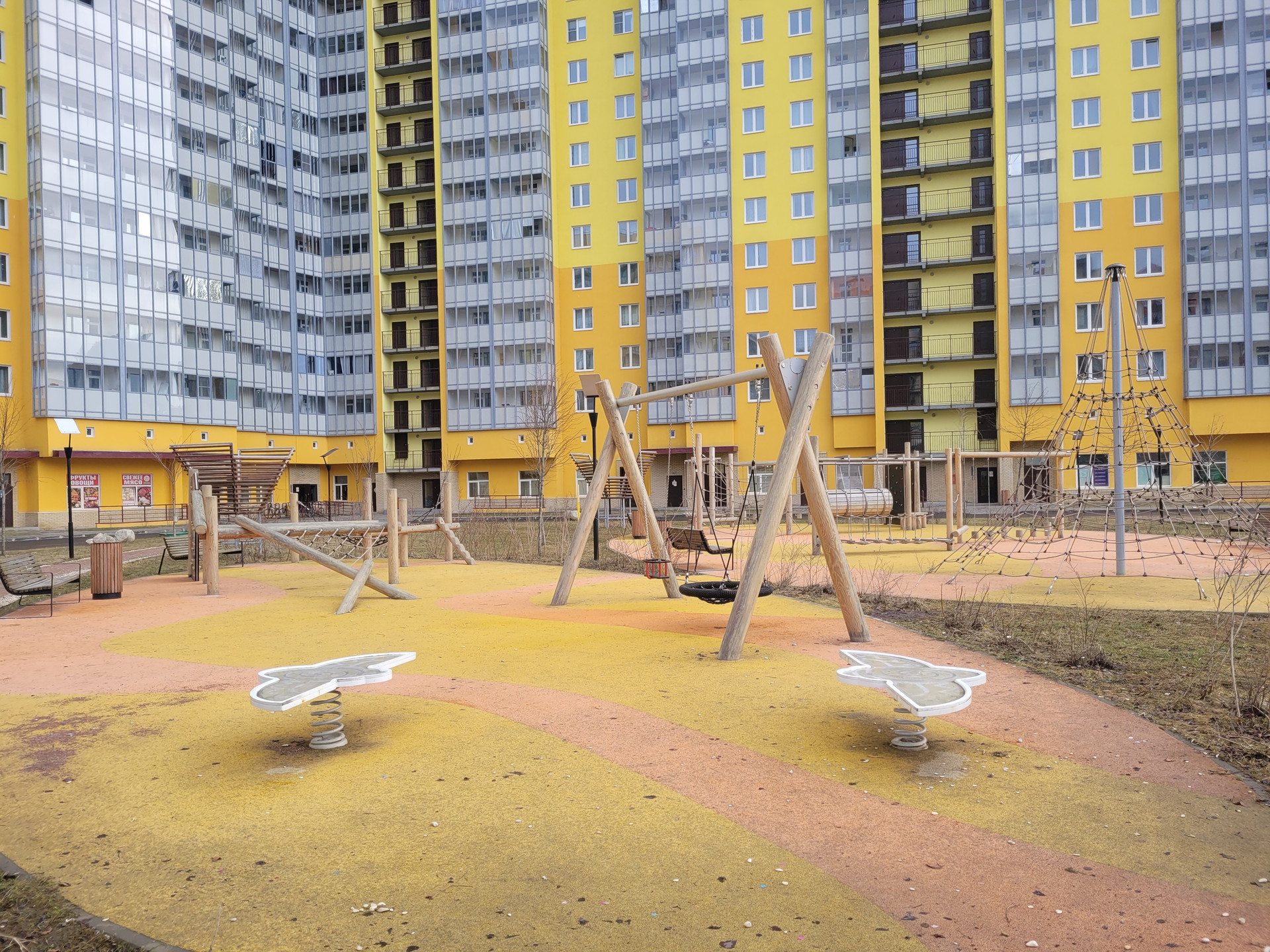 - игровые площадки с высококачественным оборудованием, безопасным покрытием и тренажерами для взрослых и детей;