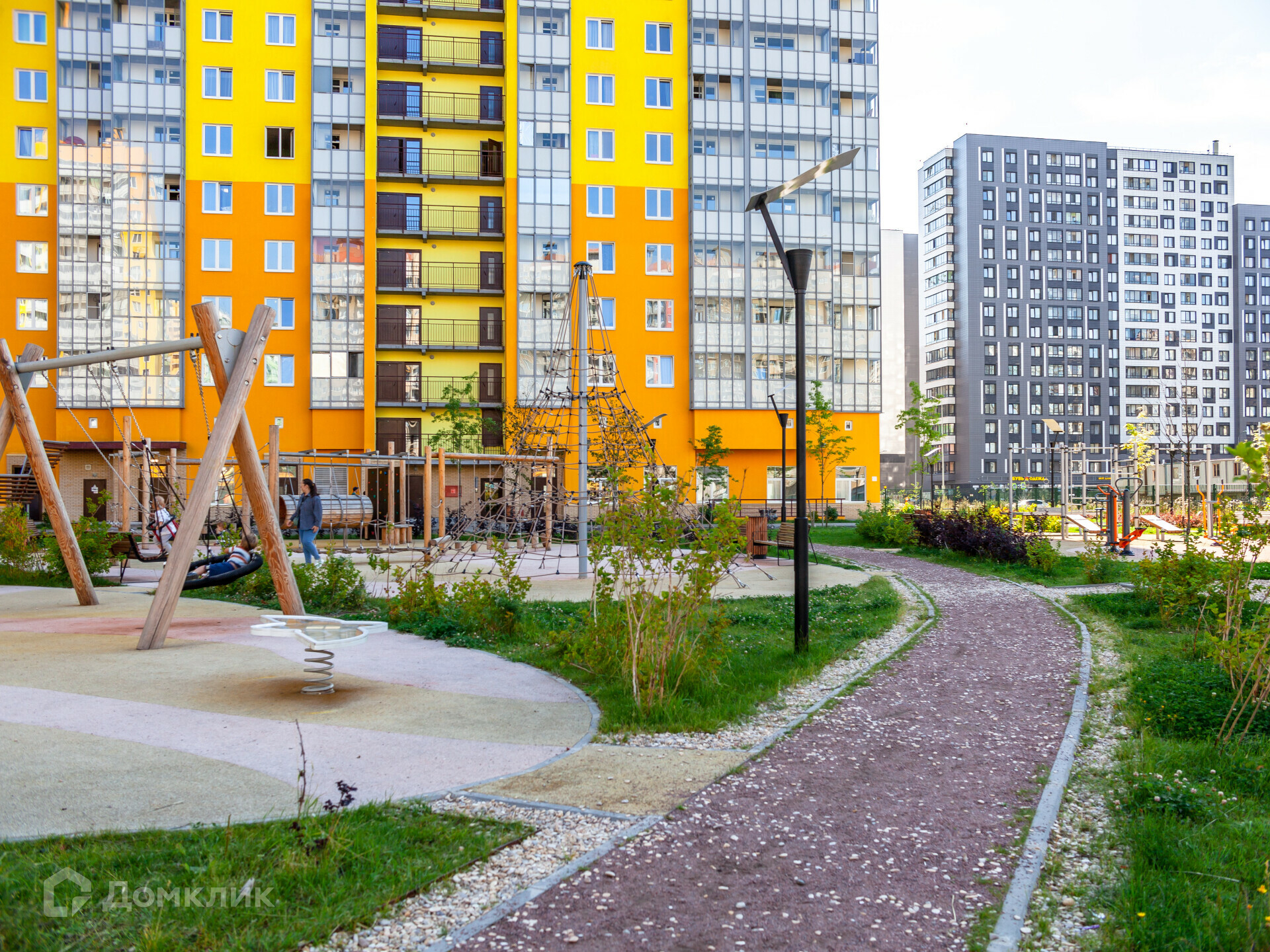 Придомовая территория благоустроена прогулочными зонами с ландшафтным дизайном, спортивной и игровой SMART площадкой.