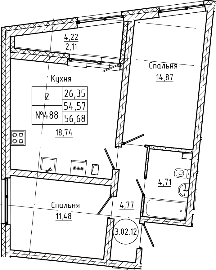 Общая площадь 57 м2
