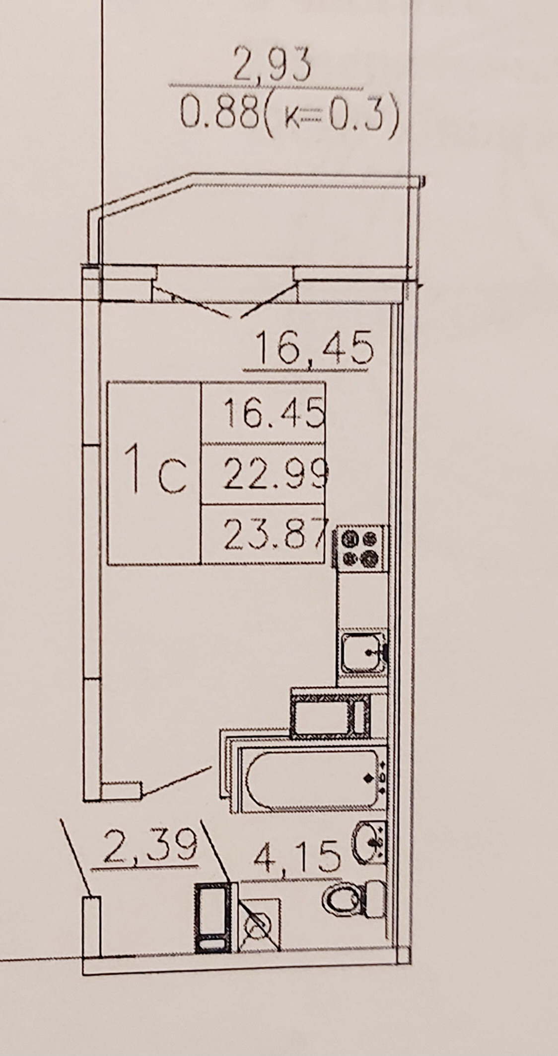 Общая площадь 23 м2