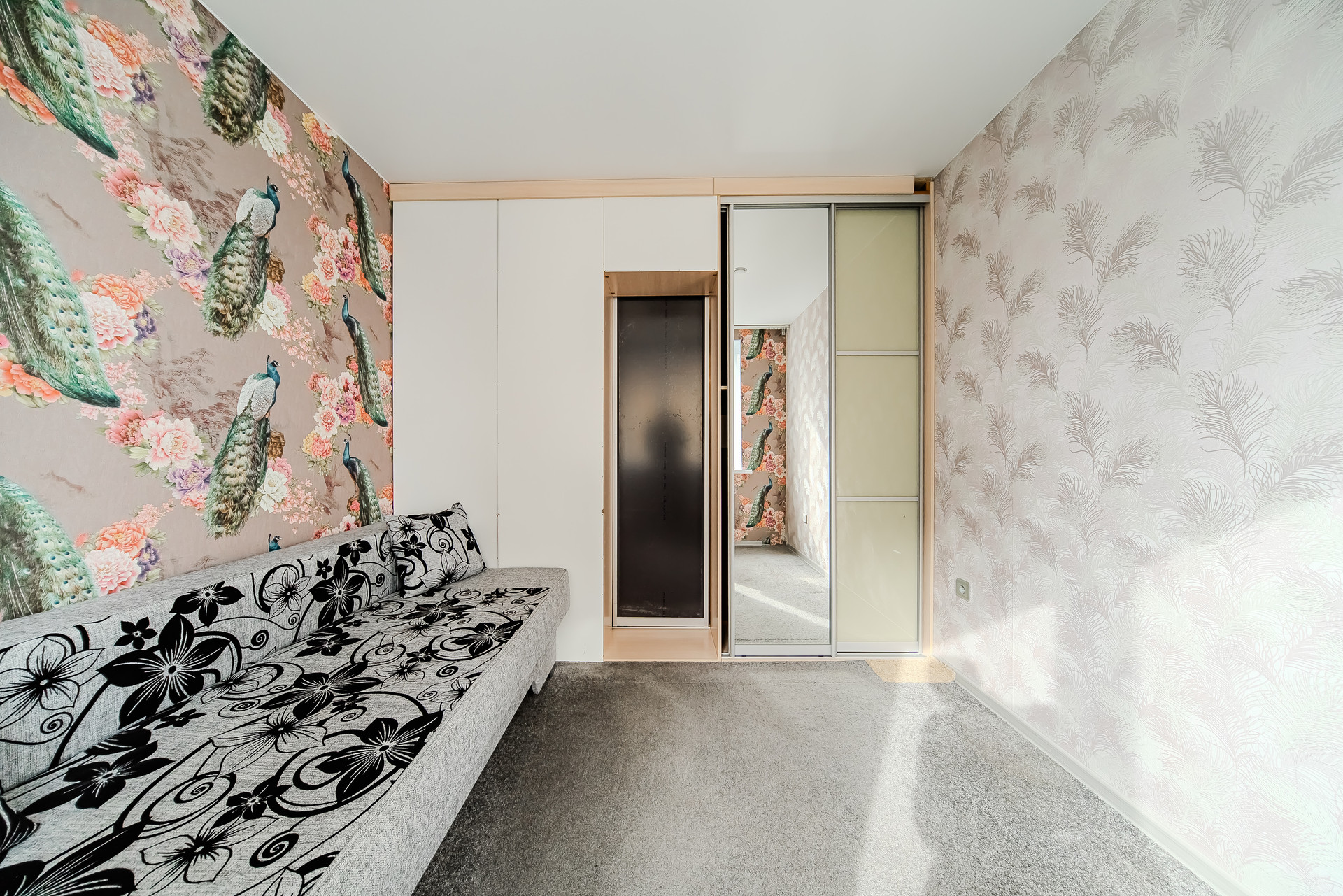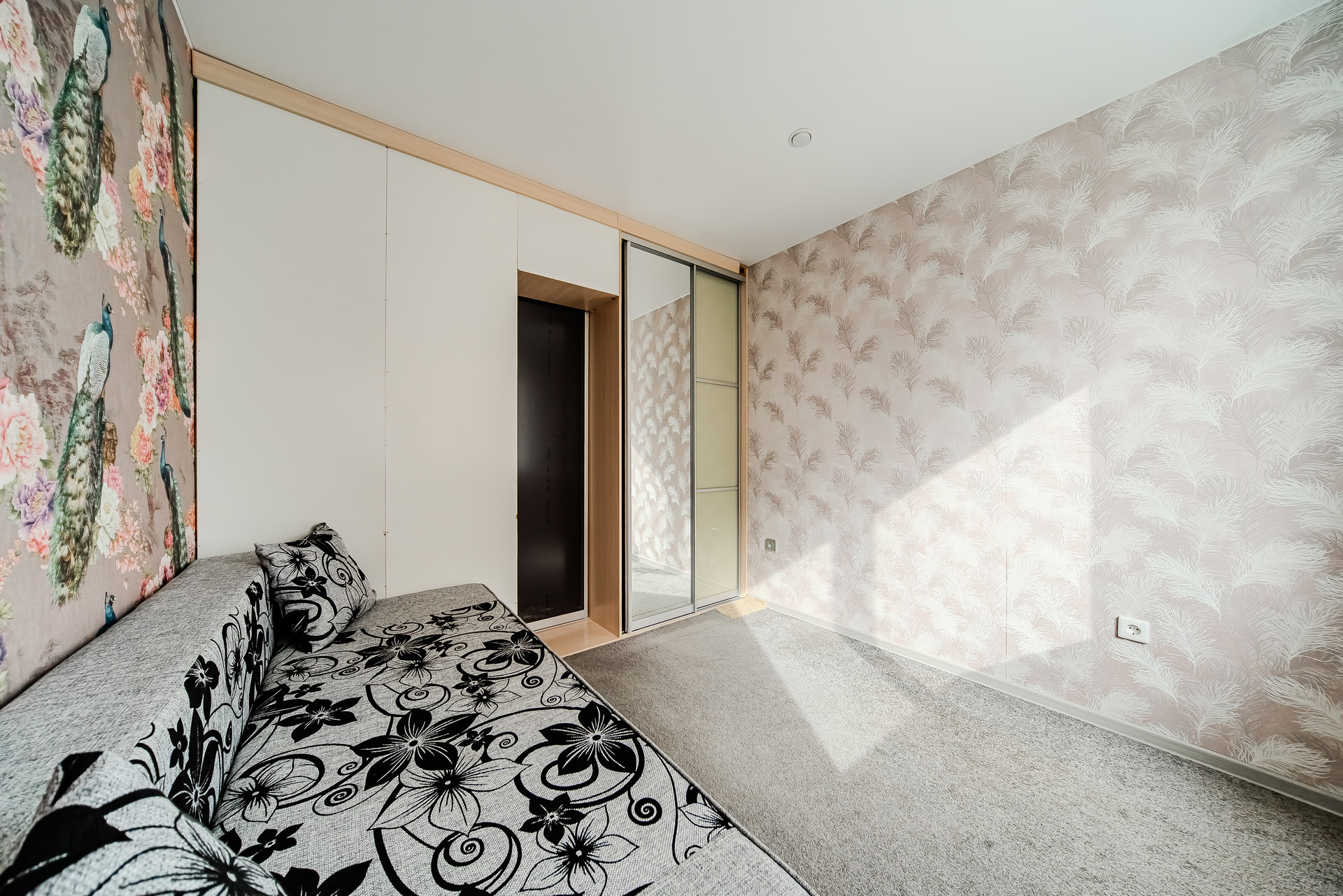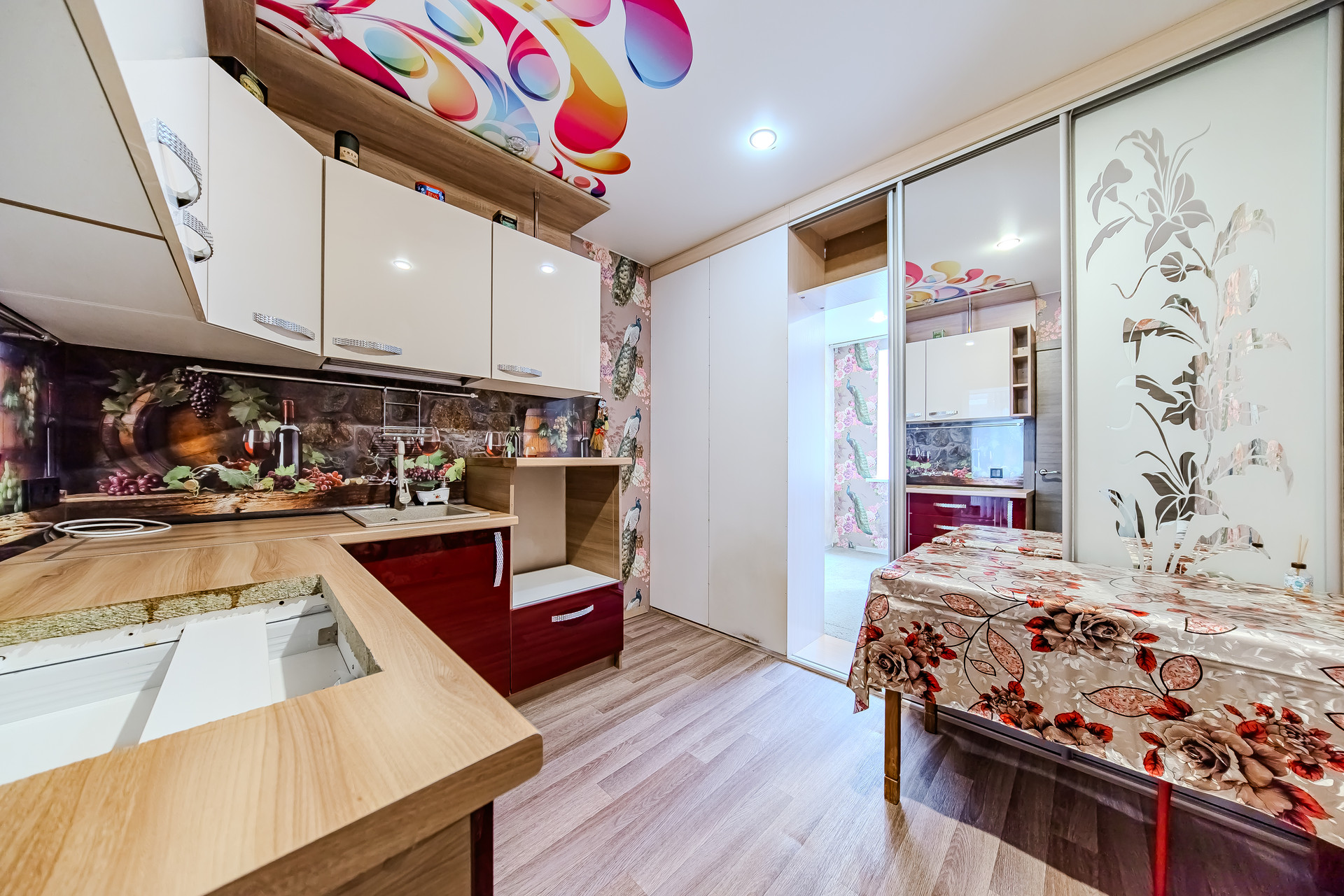 Распашонка евродвушка переделанная в двухкомнатную квартиру. Кухня полностью разделена на кухонную и спальную зону.
