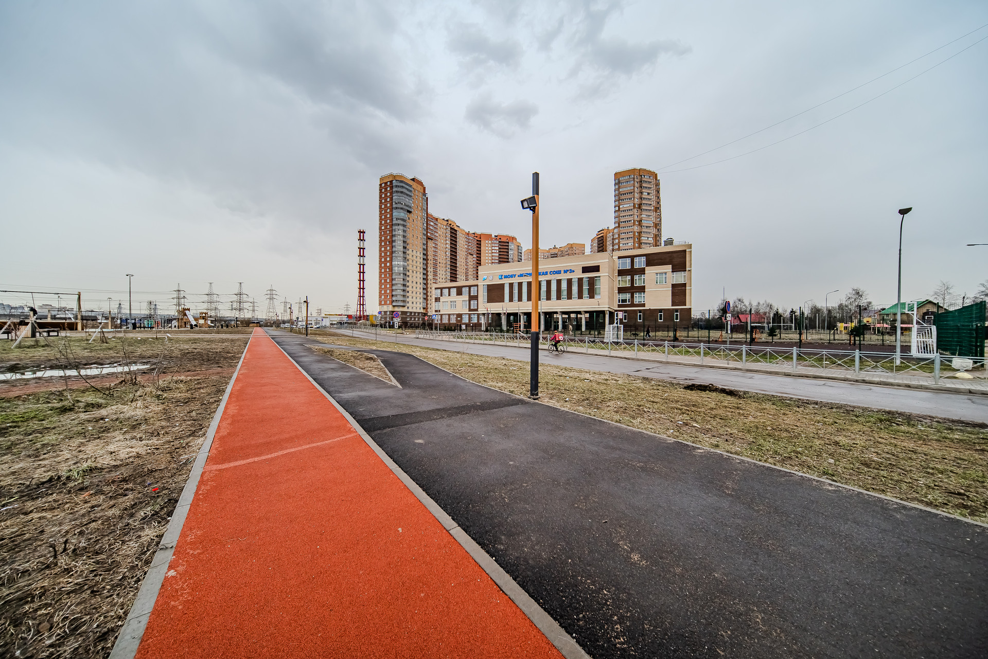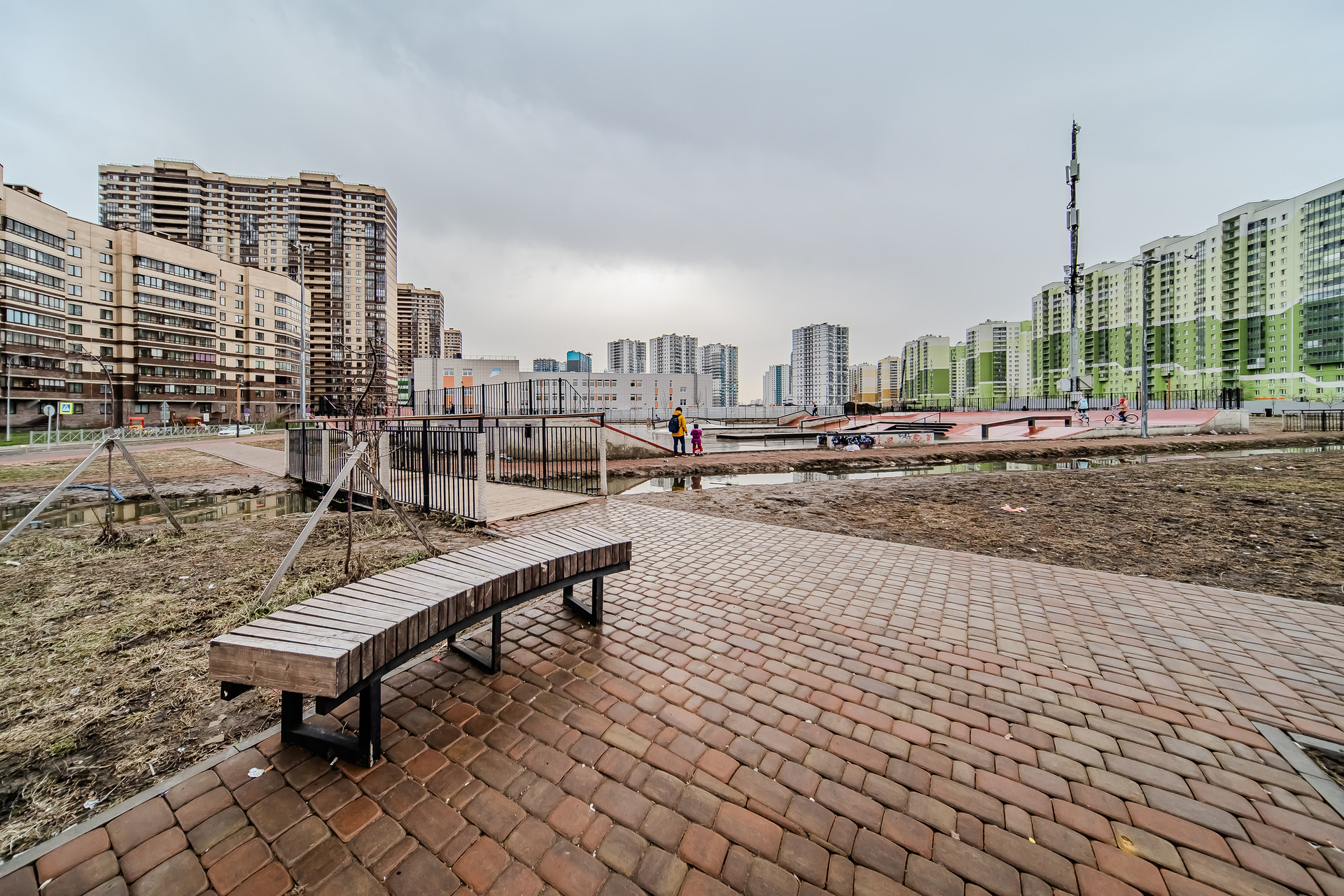 Спокойный, развитый район, в котором можно не только прекрасно жить, отдыхать и работать, но и любоваться великолепием местной природы. Возле дома протекает река Охта, на территории ЖК проведено озеленение. Недалеко от дома множество детских и спортивных площадок, а также Скейт-парк