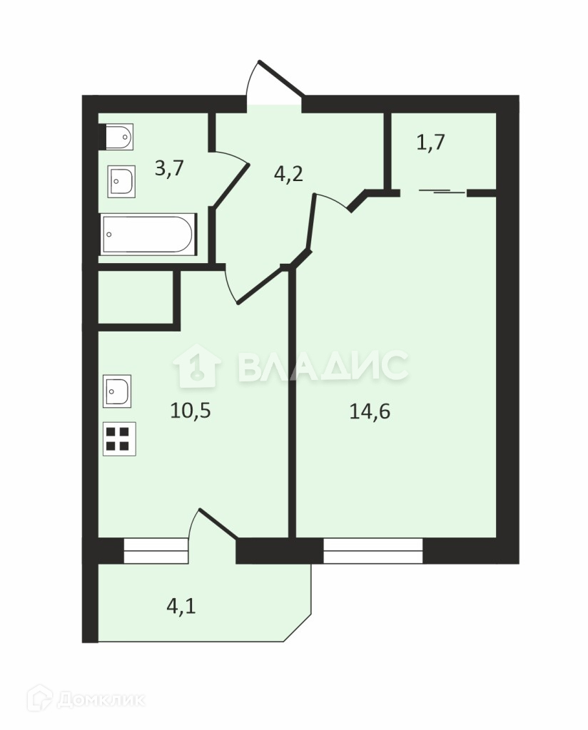 Общая площадь 39 м2