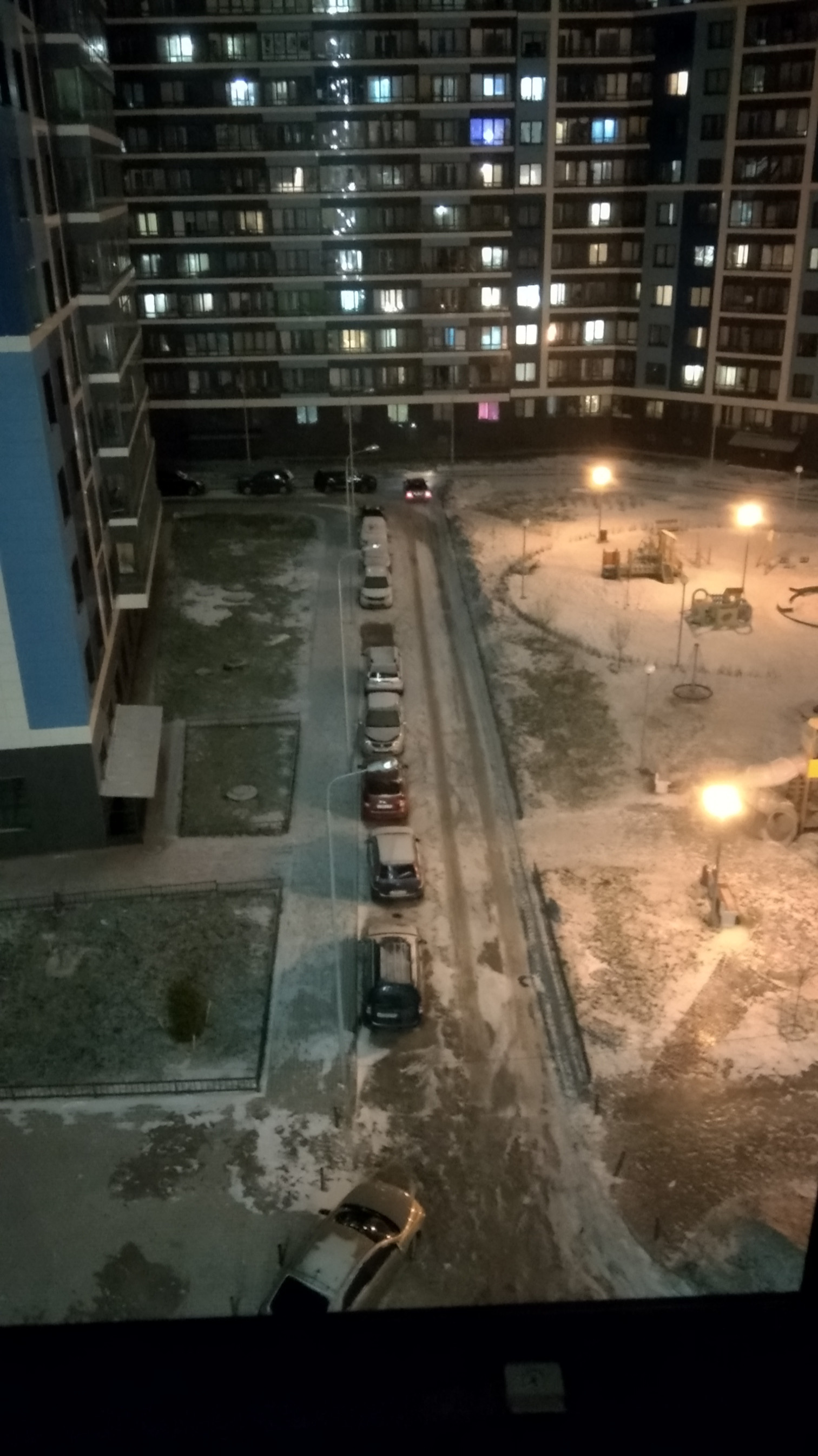 - окна выходят во двор с детской площадкой,  которая вечером разукрашена яркими огнями;