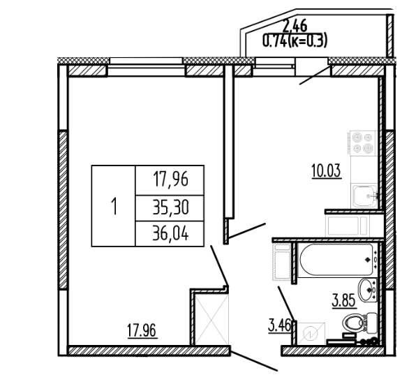 Общая площадь 36.04 м2