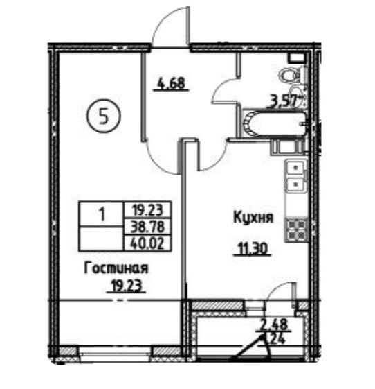 Общая площадь 40 м2