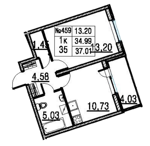 Общая площадь 37.01 м2
