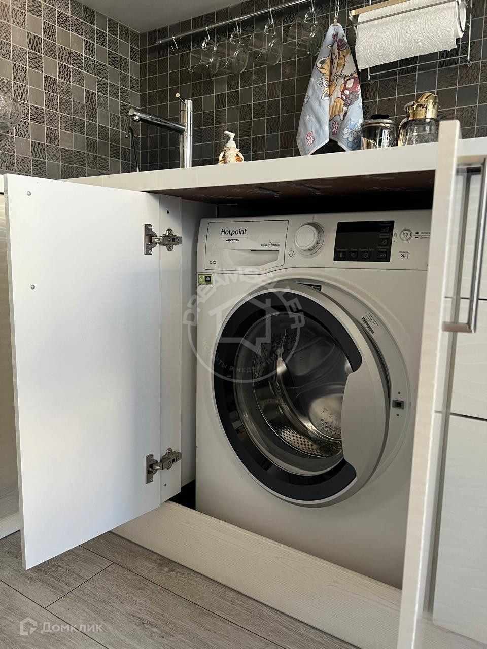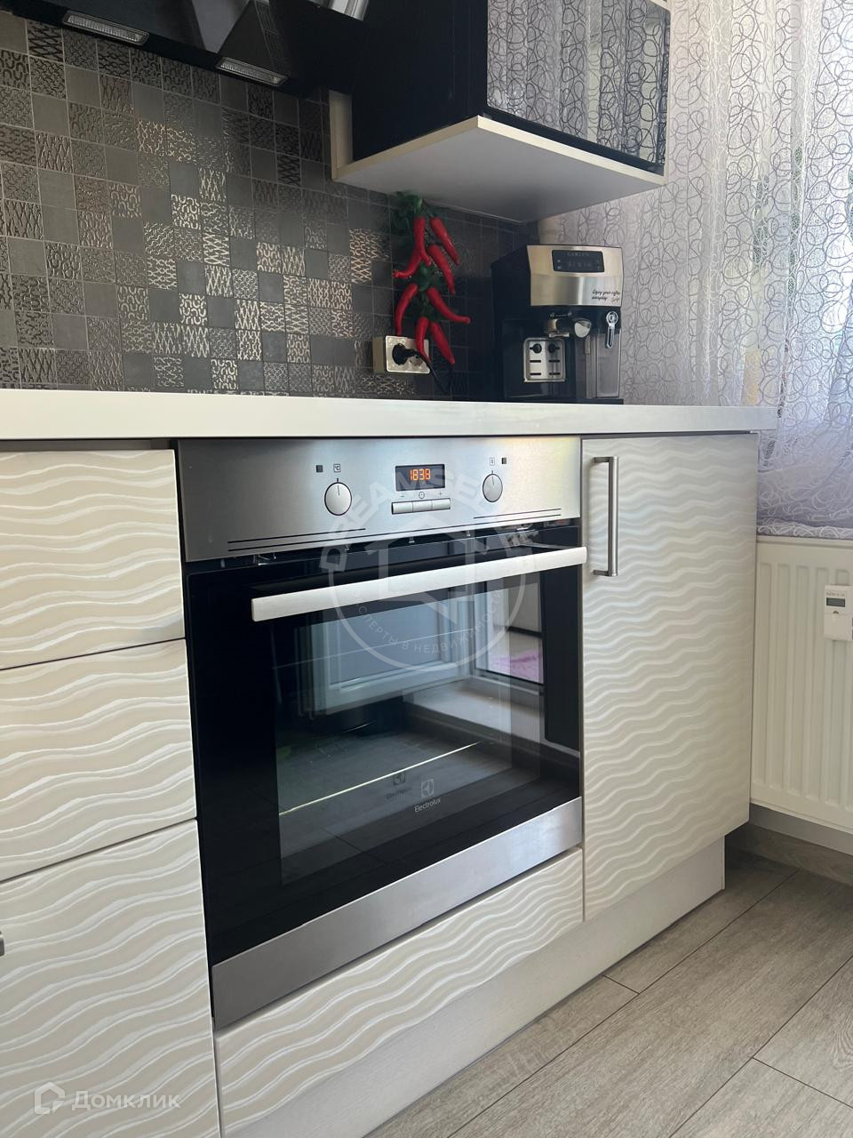 Гарнитур весь на доводчиках, встроенная техника - хорошая, дорогая.