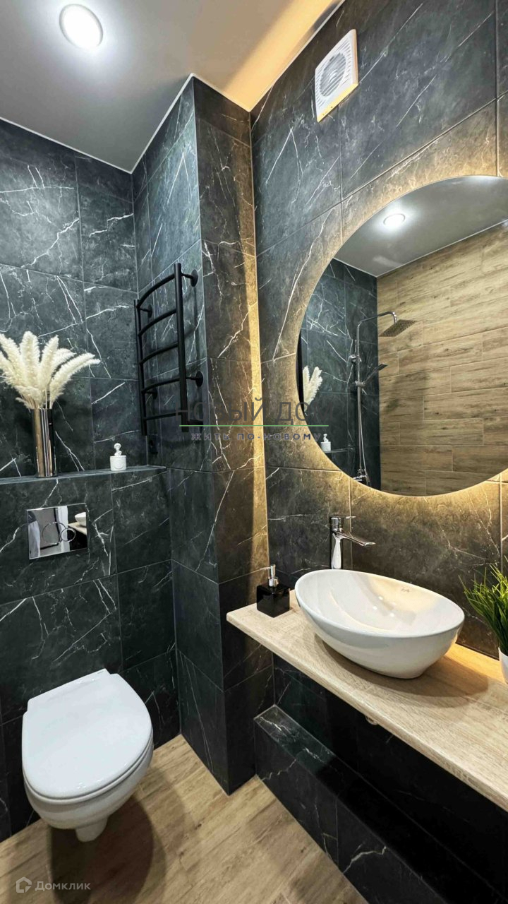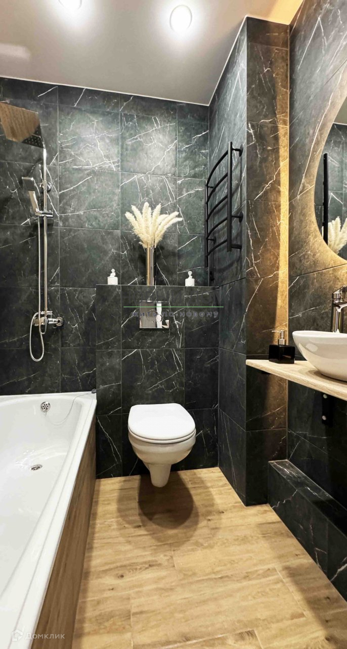 В квартире выполнен дизайнерский ремонт. Ванная комната полностью из керамогранита. Есть подогрев пола с программируемым датчиком.