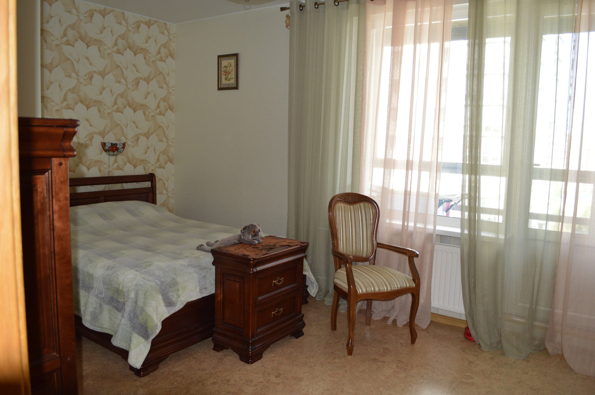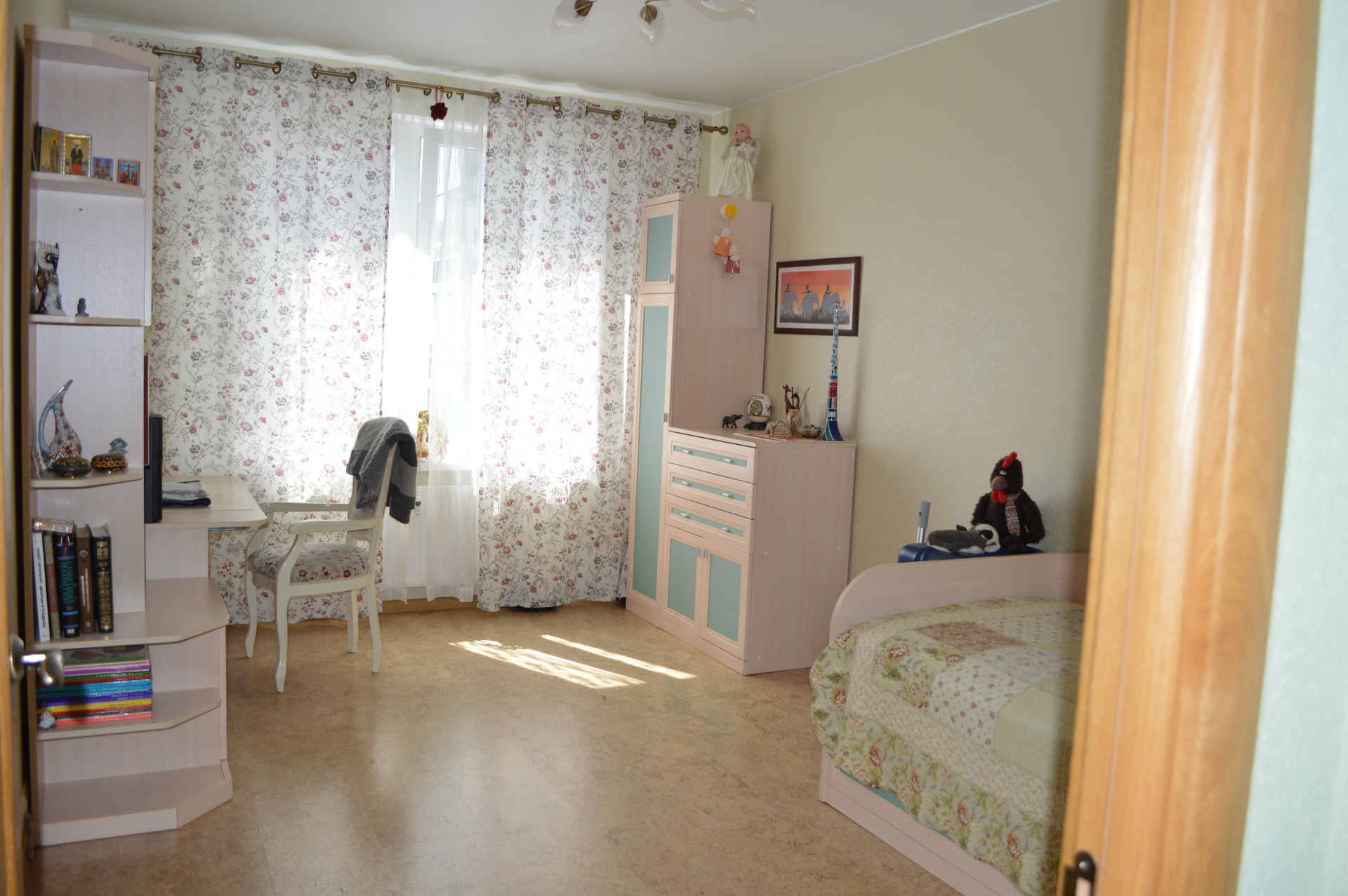 Планировка квартиры отличная: детская и взрослая спальни находятся отдельно друг от друга, квартира двусторонняя, хорошо проветривается. Есть отдельная гардеробная.