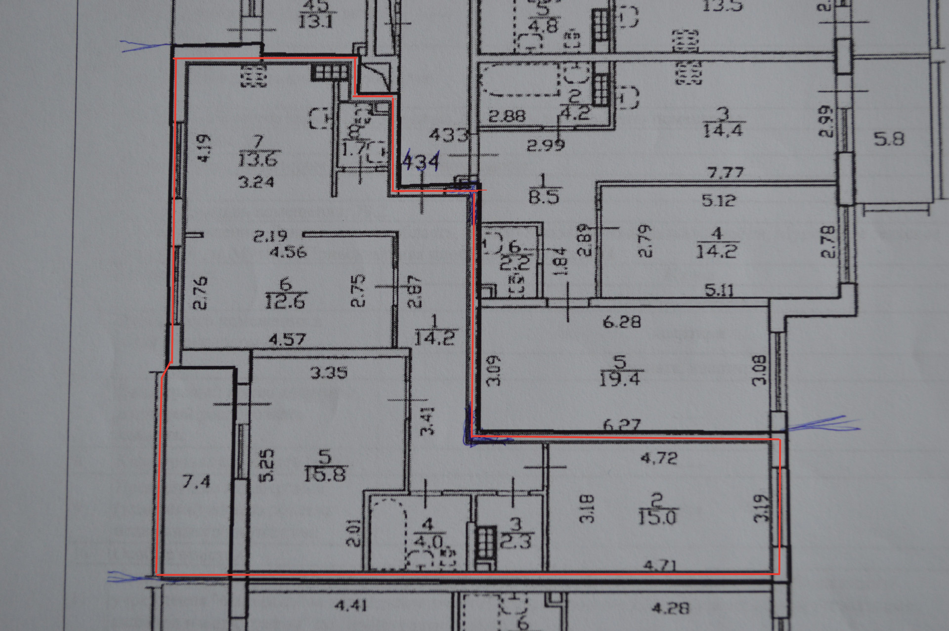 Жилая площадь 43.4 м2