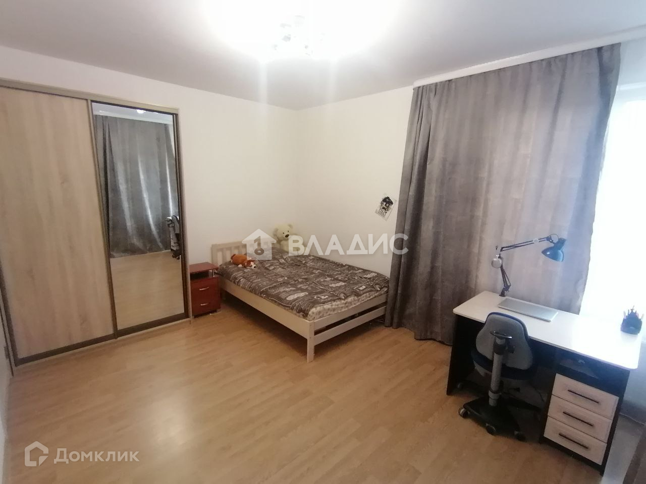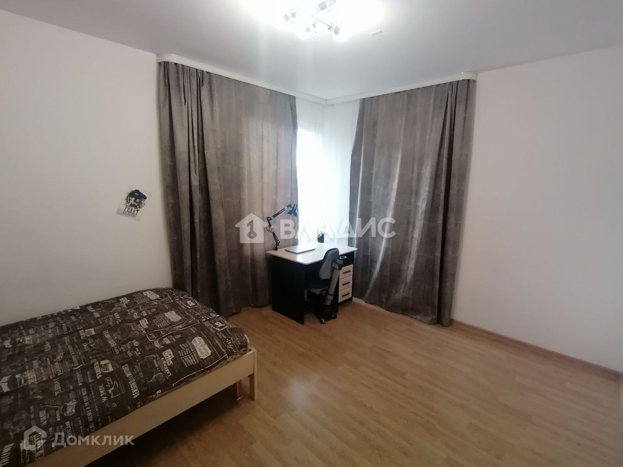 Большая комната с выходом на остеклённую лоджию оснащена спальным местом и письменным столом.