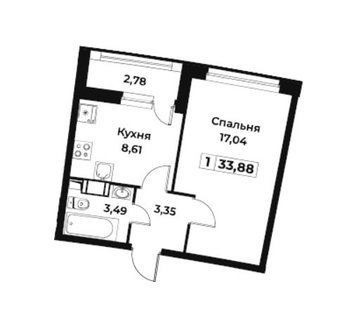Общая площадь 33.88 м2