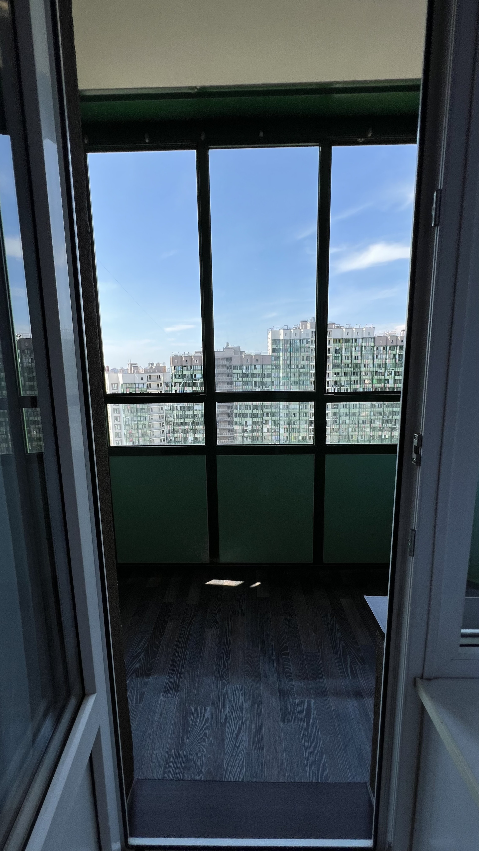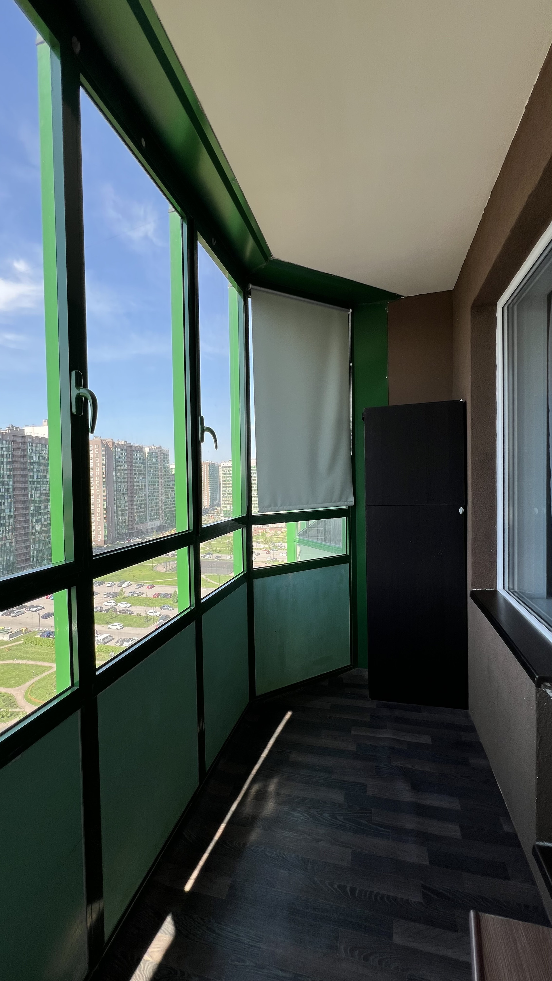 Высокий этаж, окно в большой двор.