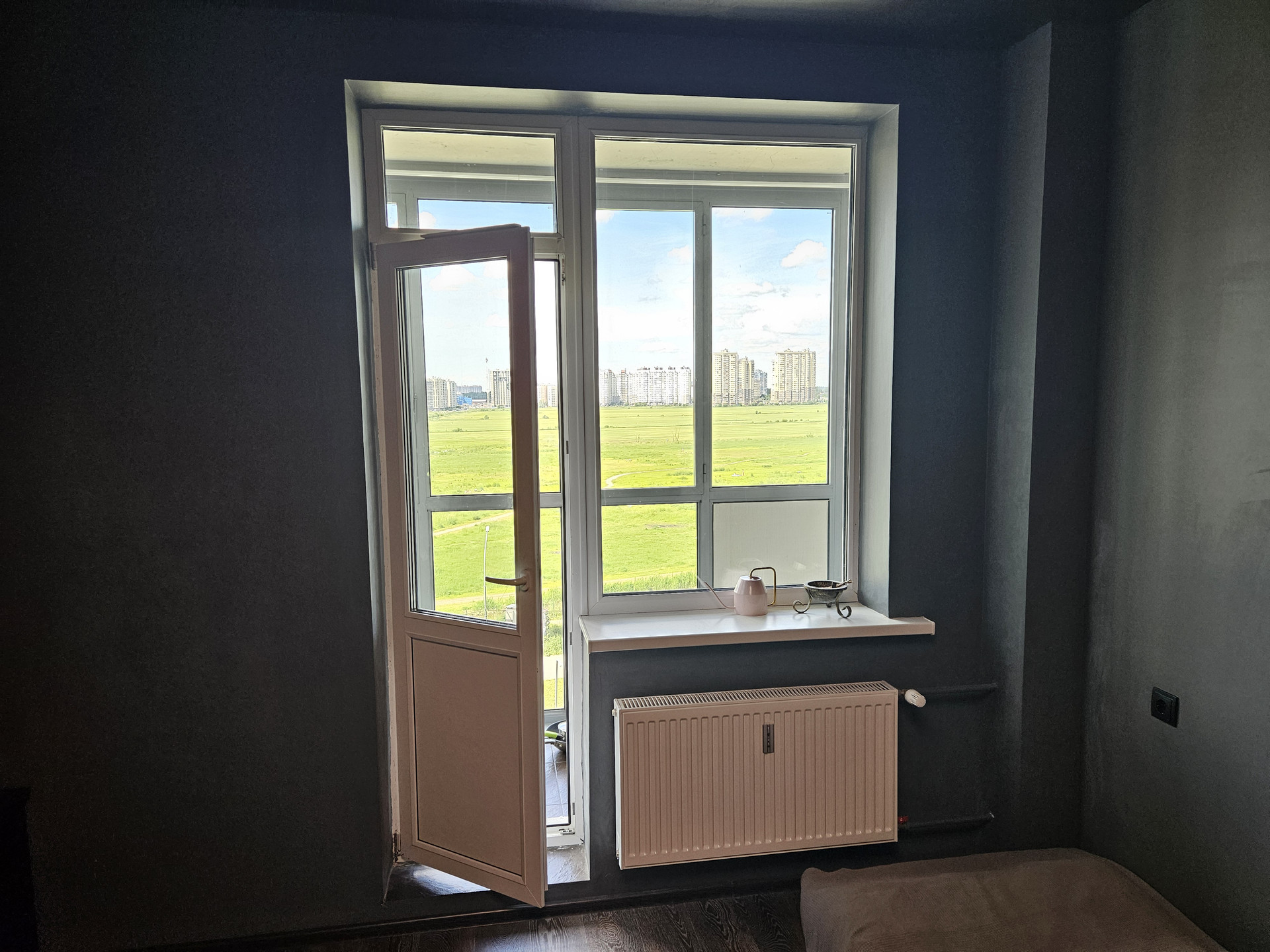 Продается студия в ЖК "Краски лета" 2018 года постройки. Общая площадь 23,3 кв. м, жилая - 17 кв. м, просторный балкон. Окно на запад, на большую незастроенную территорию. До метро Девяткино 20 минут пешком, от дома ходят маршрутки до м. Озерки, пр. Просвещения, Парнас. На машине быстрый выезд на КАД, есть несколько путей в Санкт-Петербург. Стройки рядом не ведутся, все дороги достроены, территория и дворы благоустроены. Из мебели в квартире остается стол с "кухней", небольшой холодильник, сантехника, прихожая, шкаф на балконе. Один собственник более 5 лет, обременений нет, подходит под ипотеку, прямая продажа.