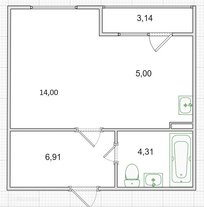 Общая площадь 30.77 м2