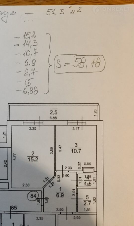 Общая площадь 58 м2