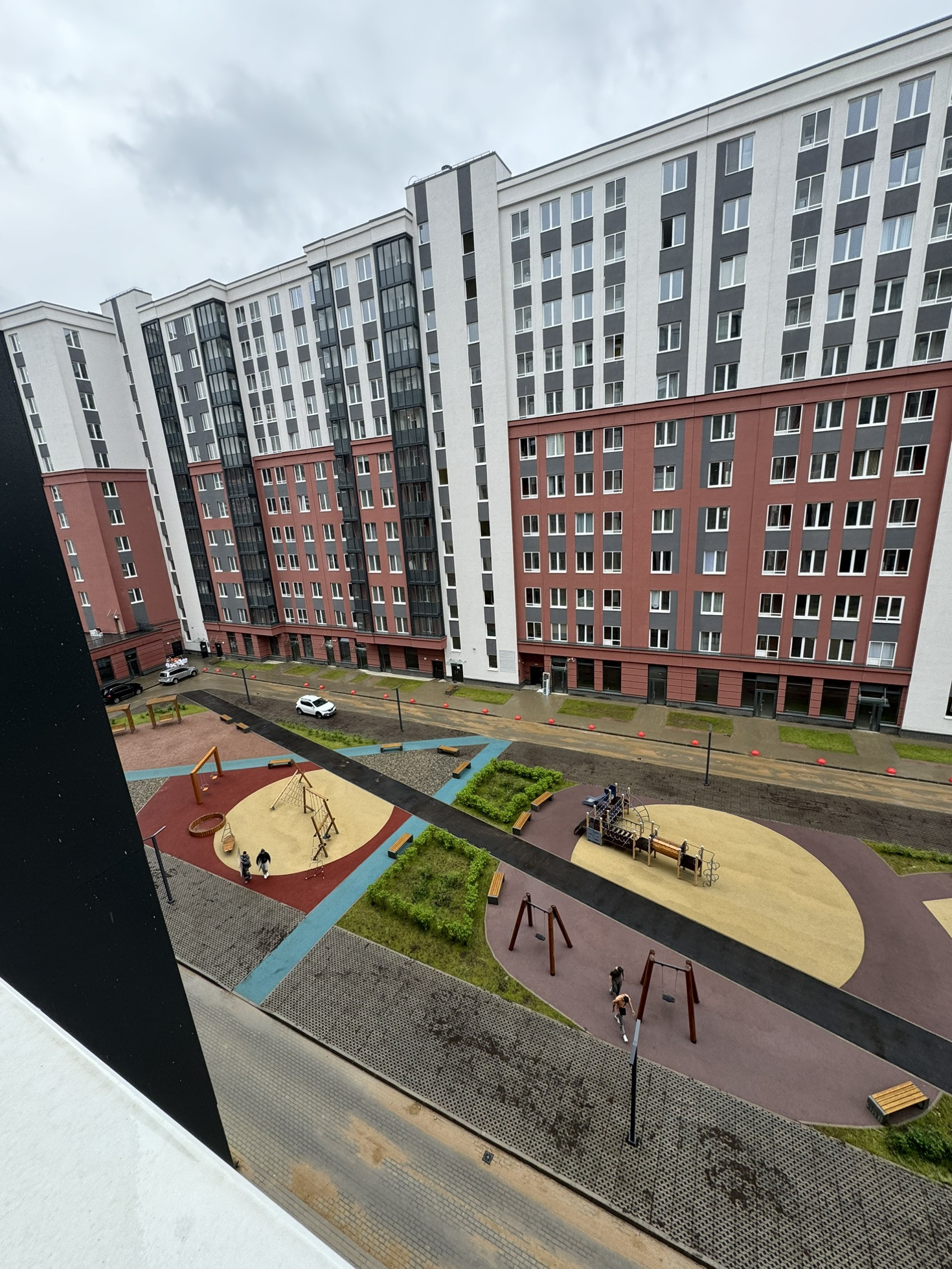 Закрытые дворы, озеленение по индивидуальному ландшафтному проекту.