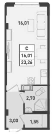 Общая площадь 23.26 м2