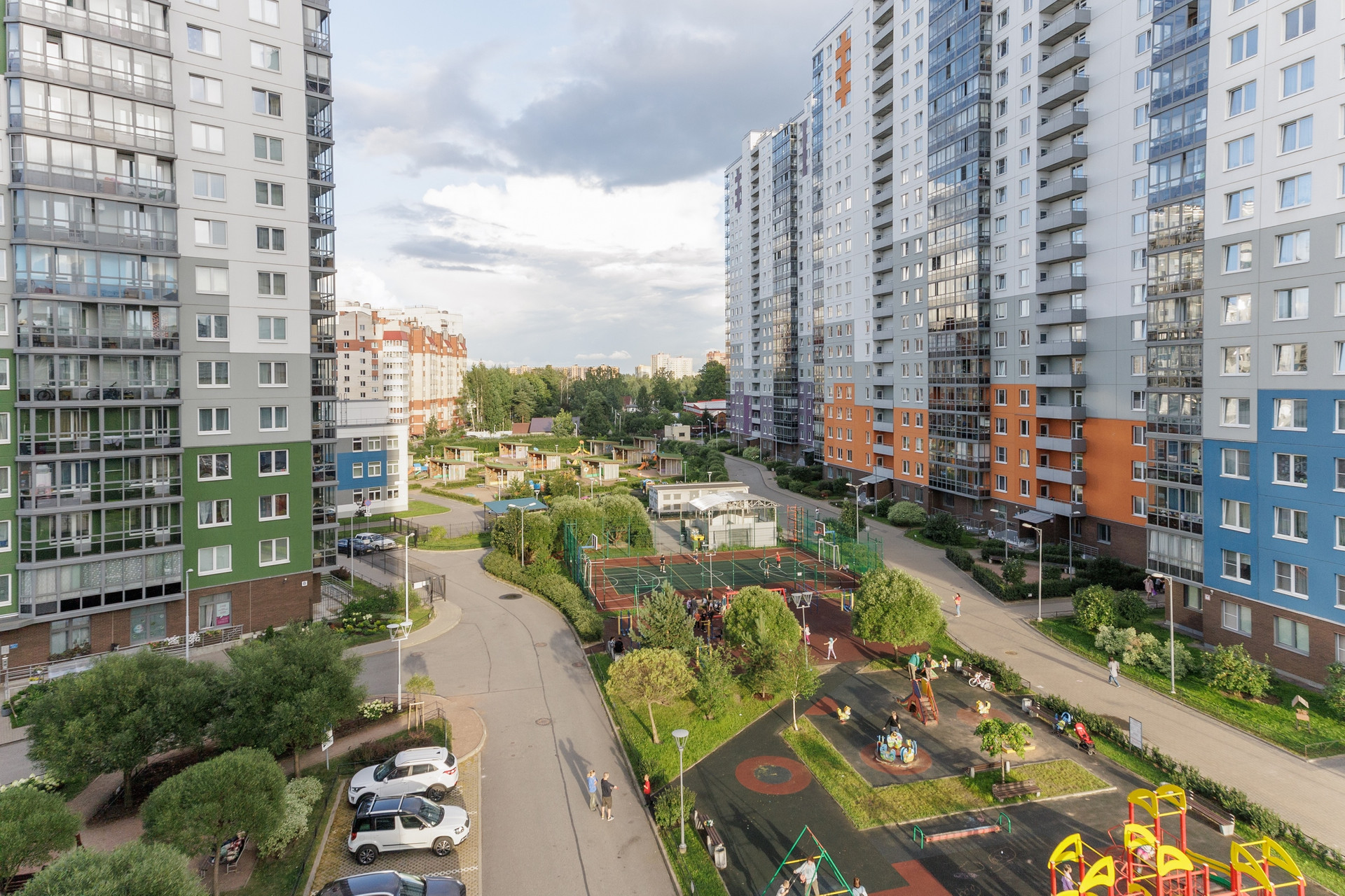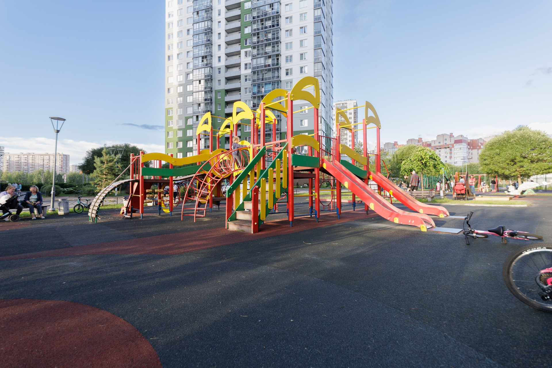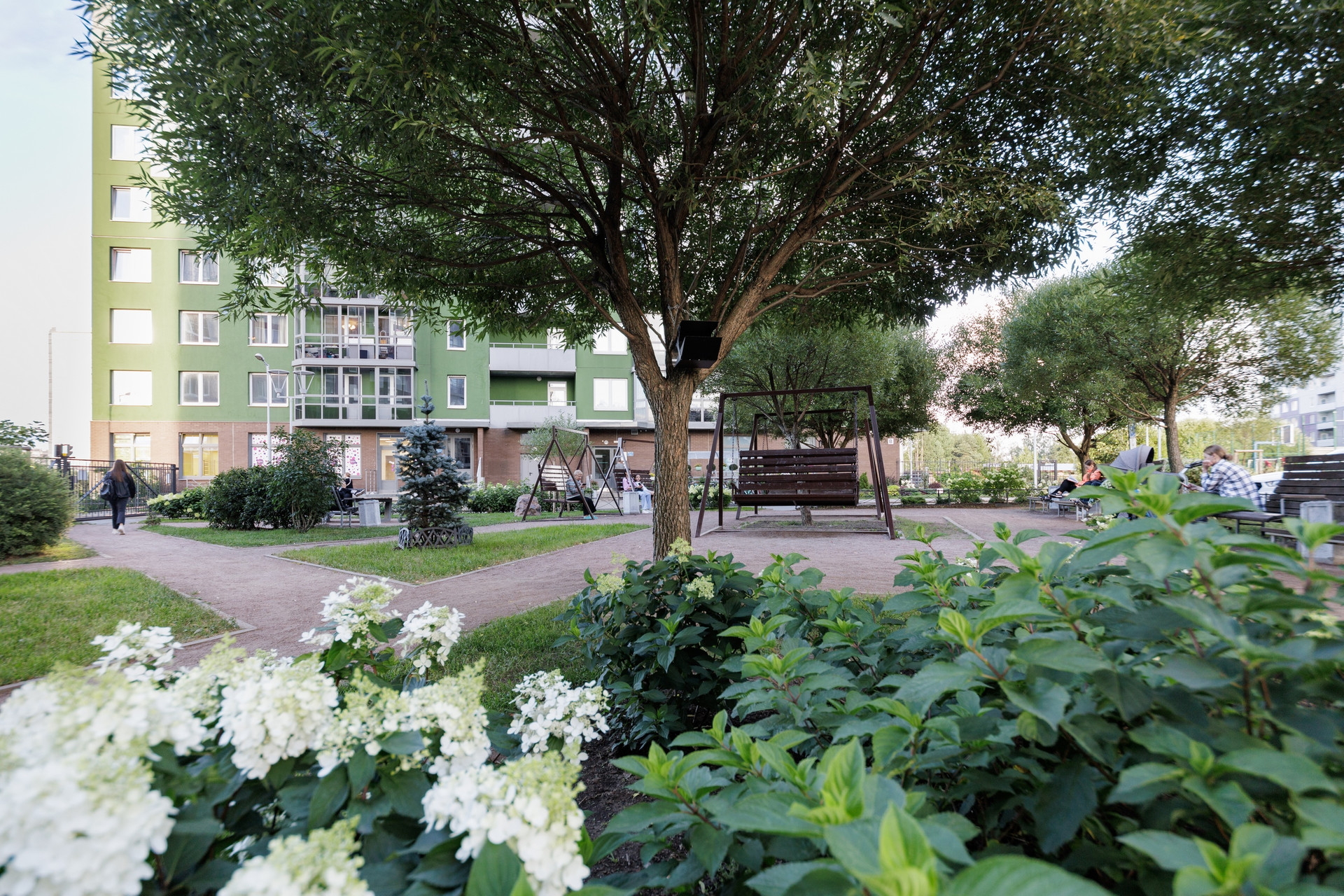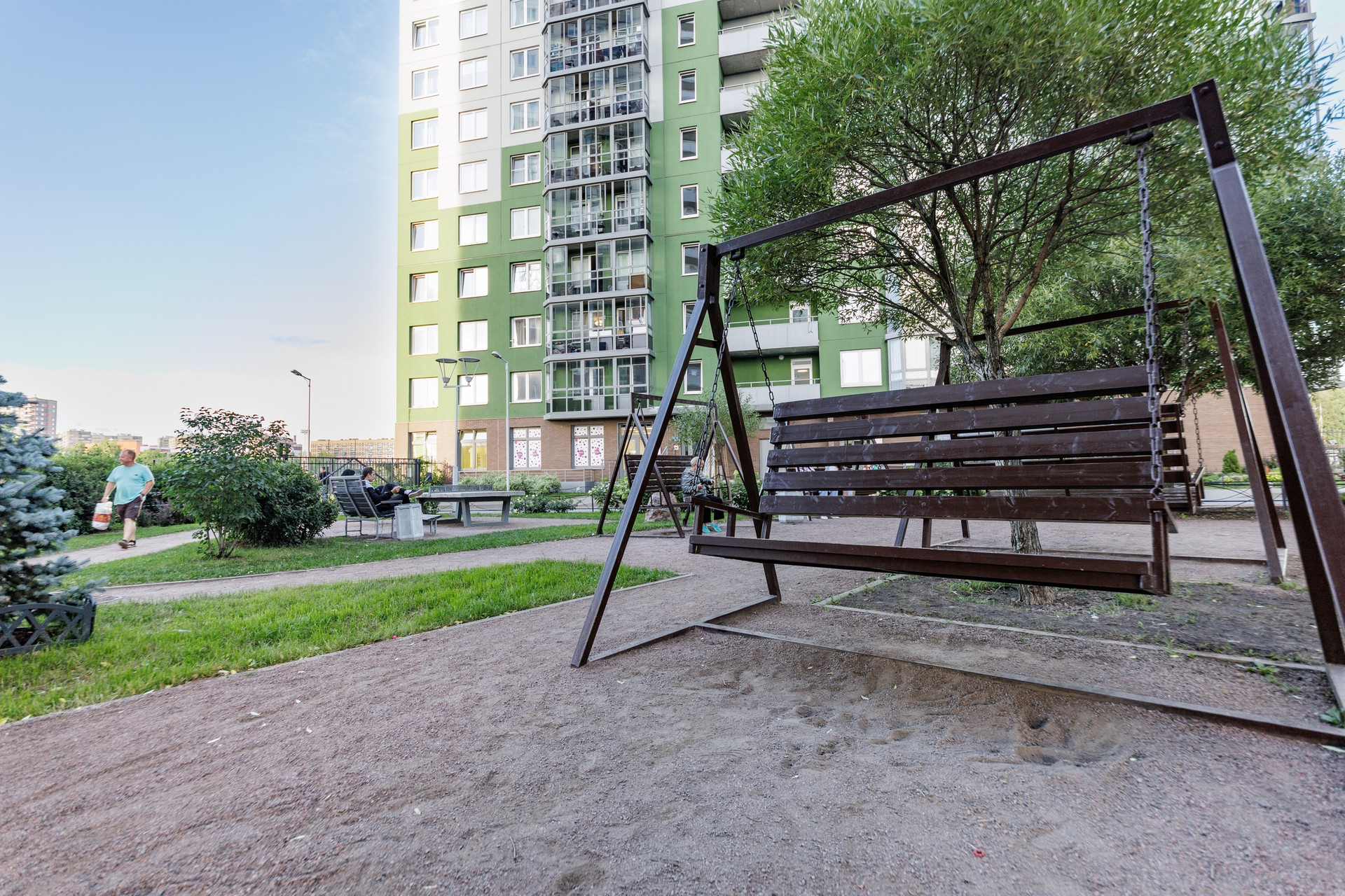 У дома Закрытая территория внутри есть детская площадка. Удобно и безопасно.