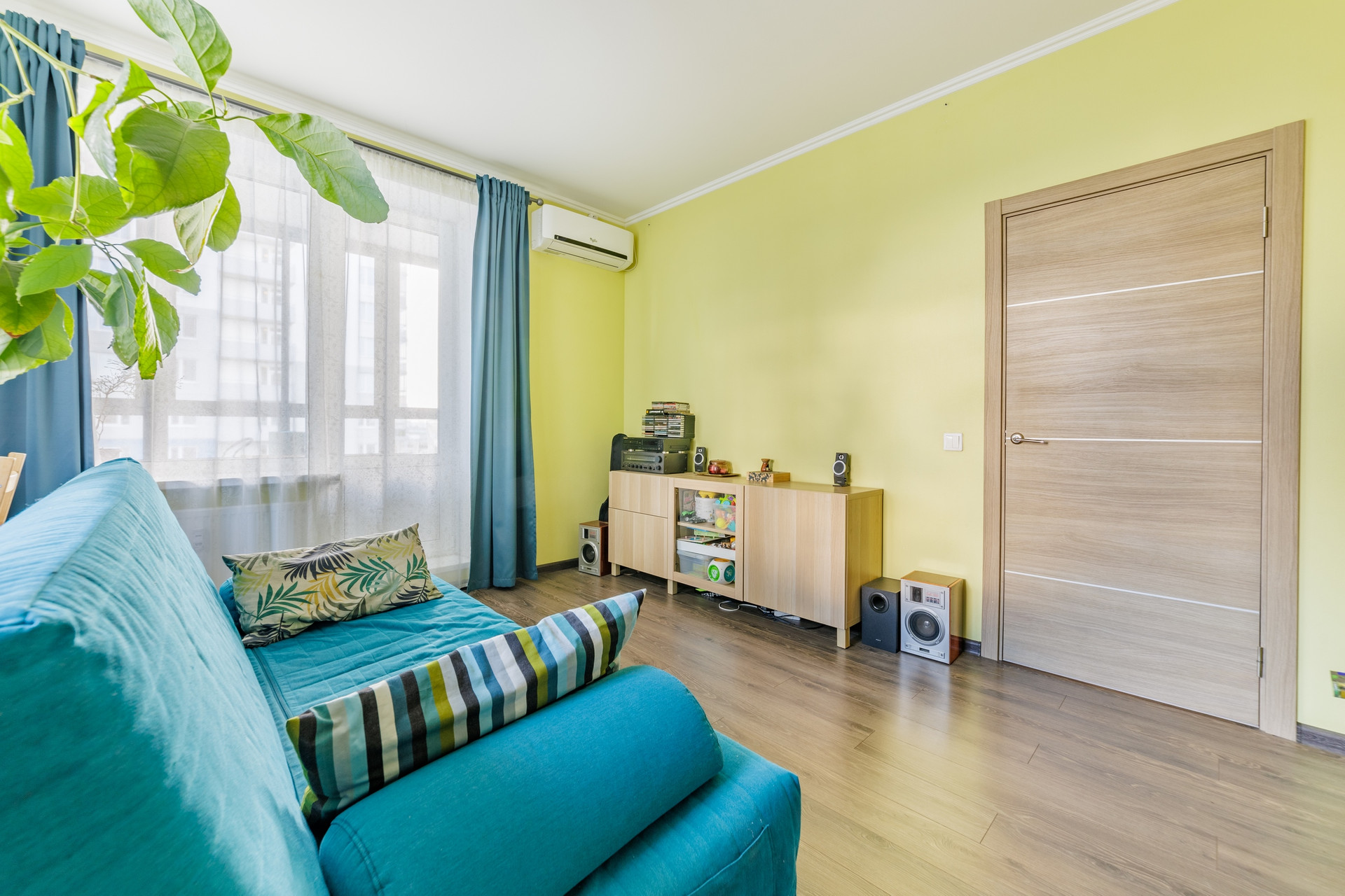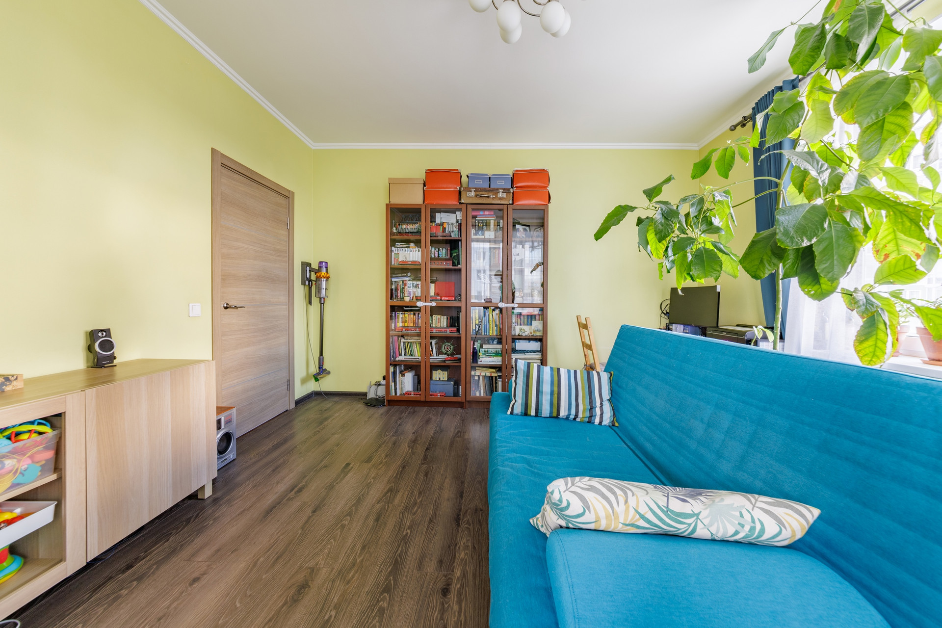 Гостиная комната площадью 16,48 комфортно принять гостей или вечером в уютной атмосфере посмотреть кино.