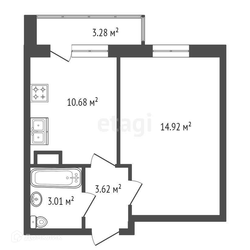 Общая площадь 32.1 м2